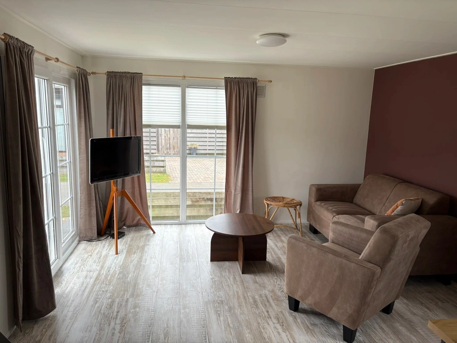 Dit comfortabele chalet is voorzien van alles wat je nodig hebt voor een ontspannen vakantie. Er is een woongedeelte met zithoek met Smart-TV, een eethoek en een open keuken. De badkamer is voorzien van een douche, wastafel en toilet. Er zijn twee slaapkamers, waarvan één met tweepersoonsbed en één met twee eenpersoonsbedden. Bij mooi weer kun je optimaal genieten in de privétuin met terras en tuinmeubelen.