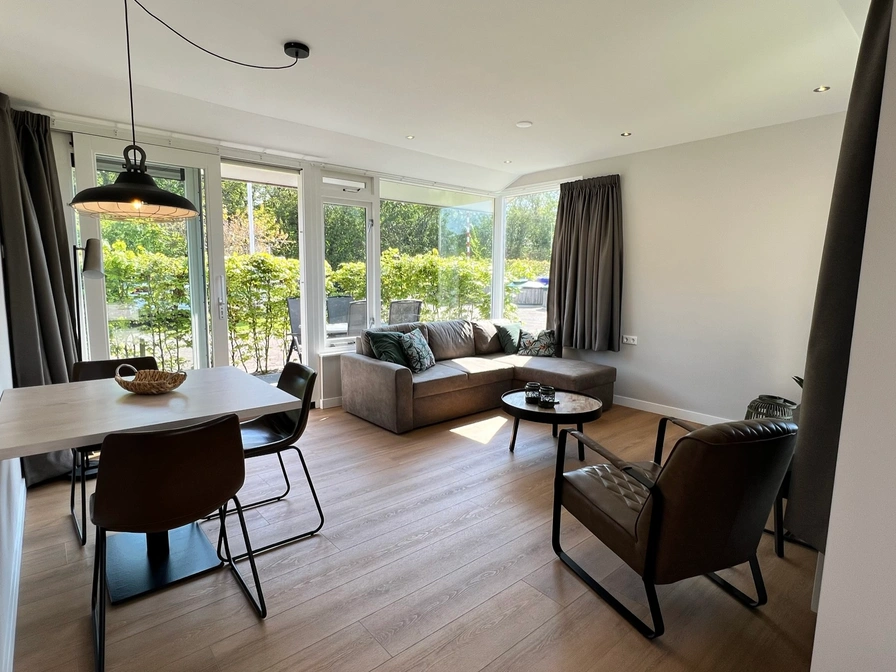 Huisje Boszicht is een vrijstaande accommodatie aan het begin van de camping. In de woonkamer staan een slaapbank, een flatscreen tv en een eethoek. De open keuken is ingericht met een 4-pits gaskookplaat, magnetron, koelkast met vriesvak, koffiezetapparaat en waterkoker. In de slaapkamer staat een tweepersoonsbed (2 matrassen 80x200) met twee enkele dekbedden. De badkamer is uitgerust met inloopdouche, wastafel en toilette. Het huisje heeft een beschutte tuin met tuinmeubilair.
