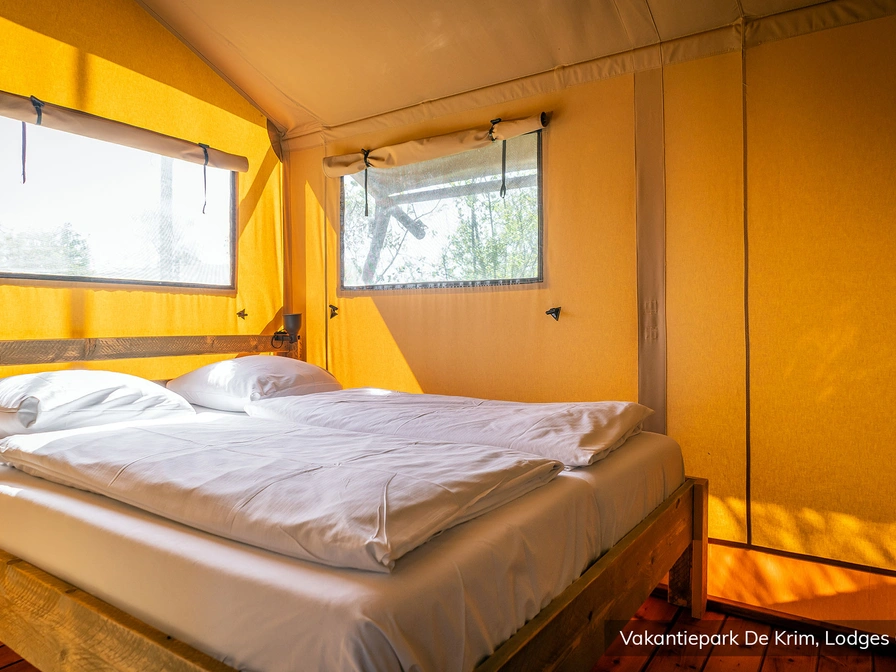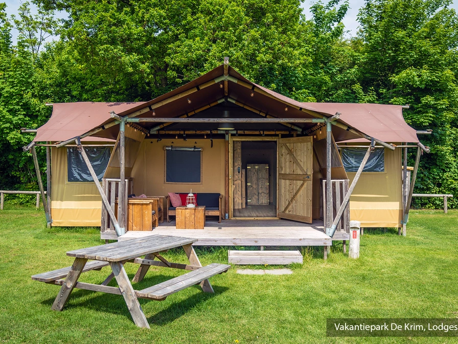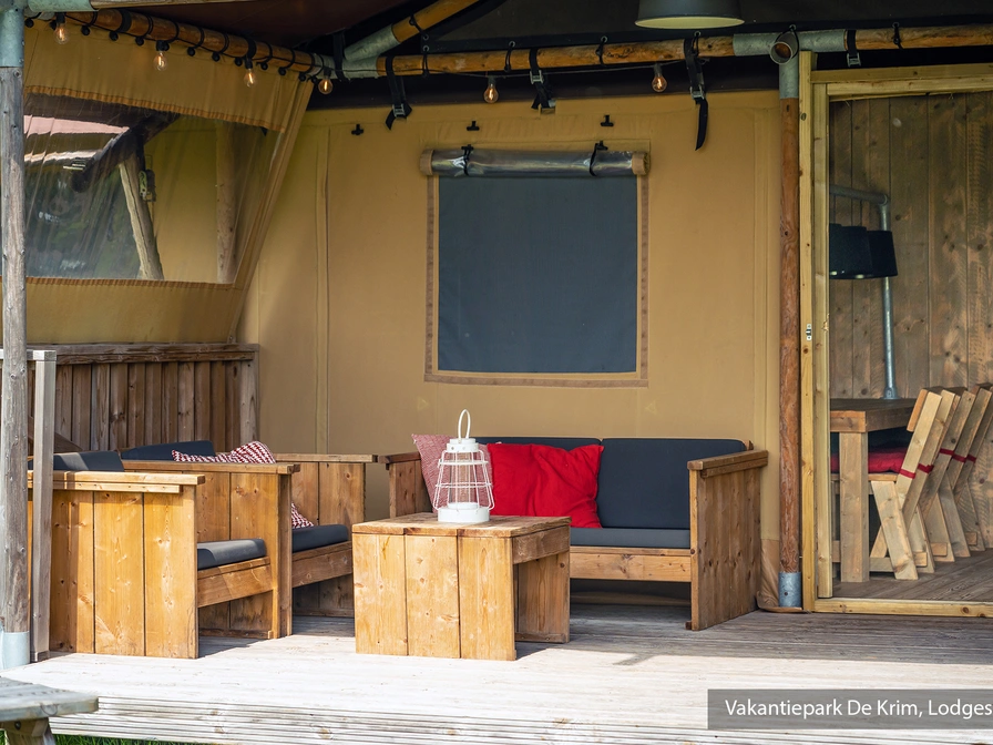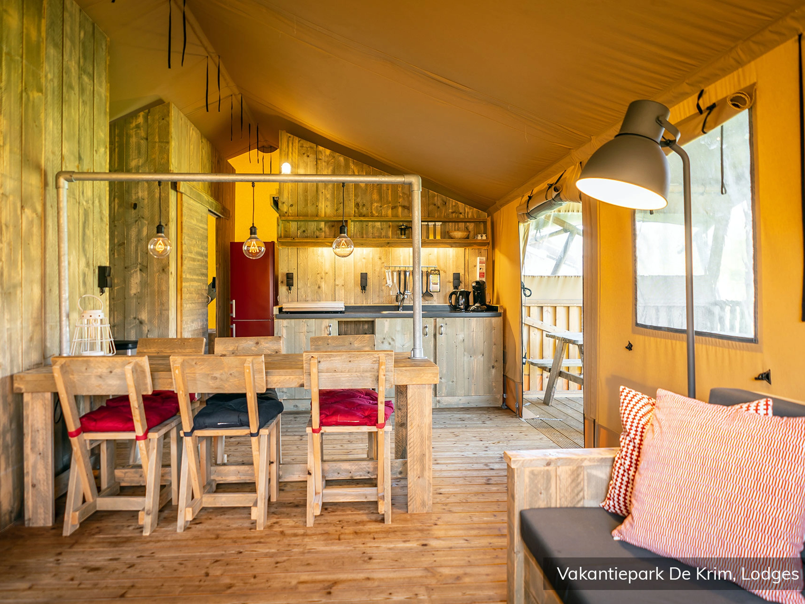 Glamping op Texel! De ruime lodges zijn geschikt voor 6 personen en compleet ingerichte glampingtenten! Echt alles is aanwezig: Een compleet ingerichte keuken, comfortabele zithoek met (petroleum) kachel, gezellige eethoek, speelruimte voor de kinderen, een eigen badkamer met douche en toilet. Je slaapt op comfortabele bedden. De kinderen slapen in een bedstede. Op het houten terras is het heerlijk vertoeven tot de late uurtjes. Dit is kamperen…maar dan net even anders!