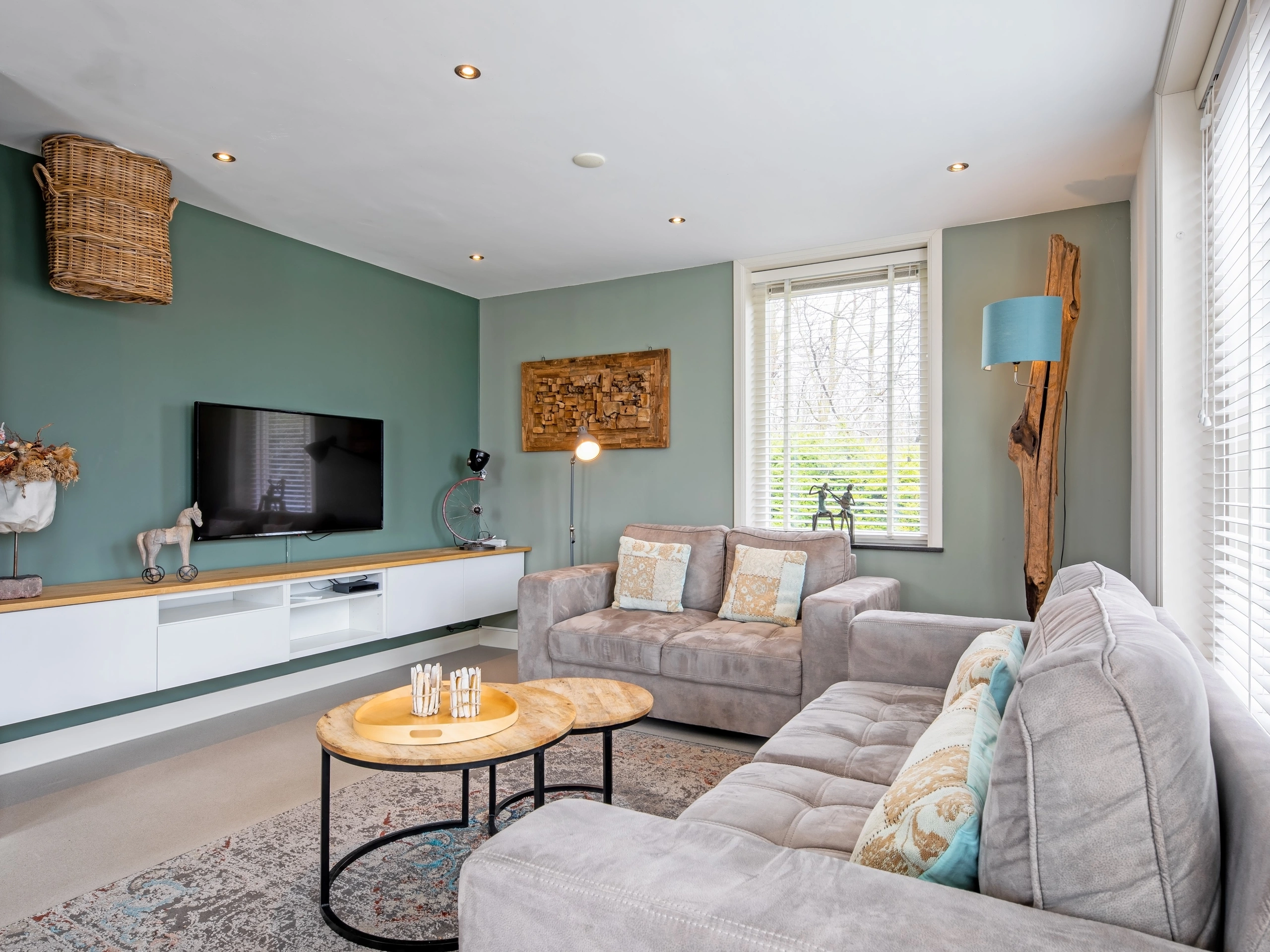 Woonkamer met zithoek, eethoek en flatscreen-tv. Open, compleet ingerichte keuken met koelkast met vriesvak, afwasmachine, oven en koffiezetapparaat. Slaapkamer met tweepersoonsbed op de begane grond. Badkamer met douche, toilet en wastafel. Er is een apart tweede toilet. Op de eerste verdieping zijn een tweede en een derde slaapkamer met elk twee eenpersoonsbedden. Hier is ook een tweede badkamer met douche, wastafel en toilet. Tuin met terras en tuinmeubels.