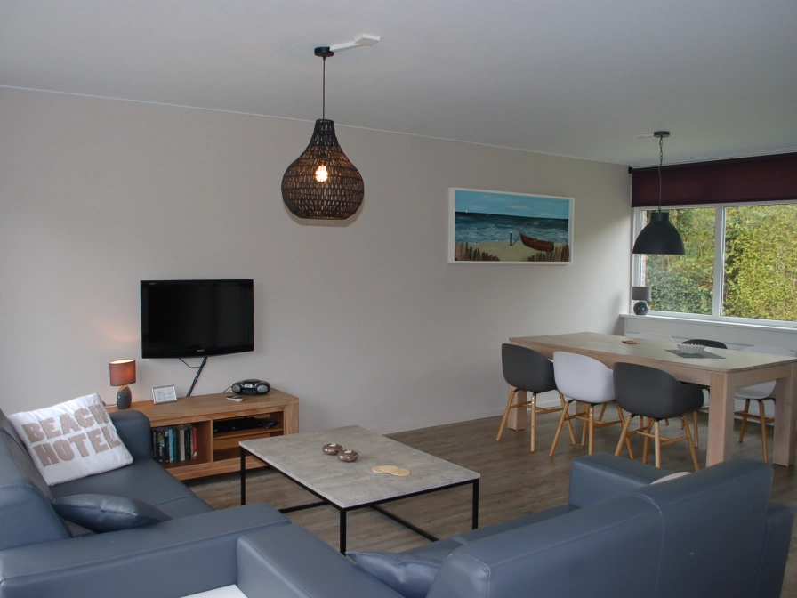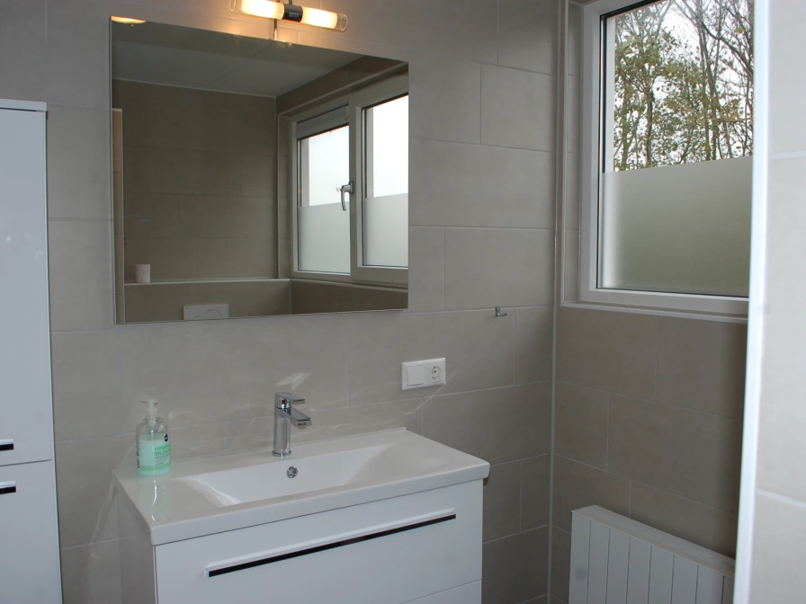 De woonkamer van dit vrijstaande vakantiehuis heeft een gezellige zitkamer met flatscreen tv en radio-cd-speler. De moderne keuken is ingericht met vaatwasser, koelkast met vriesvak, combimagnetron, broodrooster, waterkoker en koffiezetapparaat. Er zijn drie slaapkamers, waarvan 1 op de begane grond en 2 op de bovenverdieping. Alle slaapkamers hebben eenpersoons boxspringbedden. Dekbedden en kussens zijn aanwezig. Er zijn twee badkamers met douche, wastafel en toilet. Het terras, met tuinmeubilair, ligt op het zuiden.