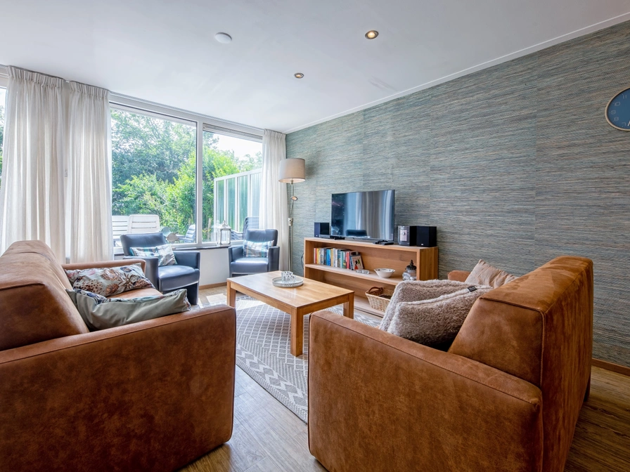 De woonkamer van dit geschakelde vakantiehuis heeft een zithoek met tv en een eethoek. De open keuken is ingericht met koelkast met vriesvak, magnetron en vaatwasser. Er zijn drie slaapkamers met allemaal twee eenpersoons bedden. De badkamer op de begane grond heeft een douche, wasbak en toilet Op de bovenverdieping zijn twee slaapkamers met elk twee eenpersoons bedden. De badkamer op de 1e etage is voorzien douche, toilet en een wastafel. Dit huis heeft een riante tuin met terras. Tuinmeubilair is aanwezig.