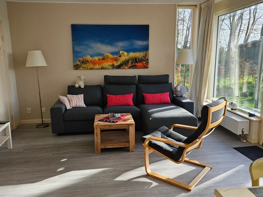 Dit vakantiehuis ligt op het rustige bungalowpark Slufterhoek, in het noorden van Texel. Je verblijft hier vlakbij natuurgebied De Slufter, waar de zee vrij spel heeft en bijzondere planten groeien. Door De Slufter wandel je in 20 minuten naar het uitgestrekte Noordzeestrand. Ook natuurgebied De Muy ligt dichtbij. Hier kun je prachtige wandelingen maken. Vanaf je vakantieadres is het 6 kilometer naar De Cocksdorp, het meest noordelijke dorp op Texel. Badplaats De Koog ligt ook op 6 km fietsen, maar dan naar het zuiden. Naar beide dorpen lopen mooie fietsroutes door de duinen en je vindt er winkels, terrassen en restaurants. In de directe omgeving vind je een restaurant (750m) en diverse attracties, zoals het vliegveld, paracentrum en ijsboerderij Labora.