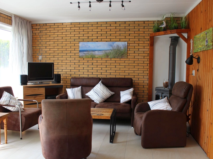 De woonkamer van deze vrijstaande bungalow heeft een zithoek met tv en een eethoek. De open haard kan helaas niet gebruikt worden. De open keuken is ingericht met koelkast met vriesvak, magnetron en vaatwasser. Er zijn drie slaapkamers, waarvan 1 met 1 eenpersoons bed en 2 met elk 2 eenpersoons bedden. De badkamer heeft douche en toilet. Deze bungalow heeft een tuin met terras. Tuinmeubilair is aanwezig.