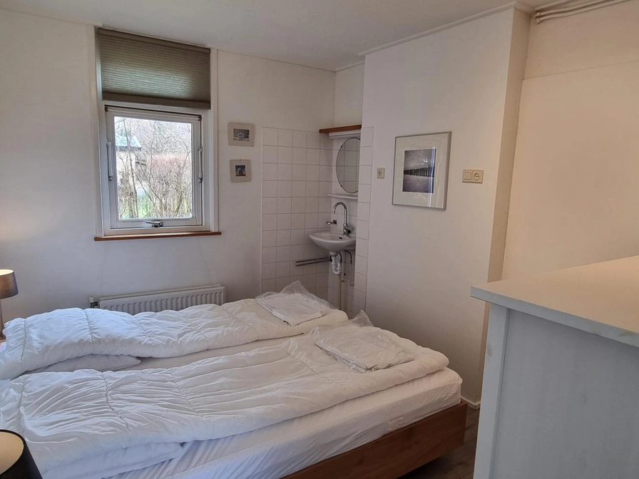 De woonkamer van deze geschakelde bungalow heeft een eethoek en zithoek met tv en radio-cd speler. Open keuken met vaatwasser, koelkast met vriesvak, een gasfornuis, een combimagnetron (hete lucht), contactgrill, waterkoker, koffiezetapparaat en een Senseo apparaat. Slaapkamer met een tweepersoonsbed met aparte matrassen en aparte dekbedden (160x200) en wastafel. Tweede slaapkamer met twee eenpersoonsbedden (90x200 cm). Badkamer met inloopdouche, wastafel en toilet. Via de schuifdeur in de woonkamer komt je in de fijne tuin. Er zijn terrassen op het oosten en westen en tuinmeubels met parasol.