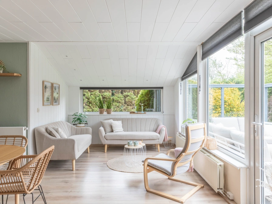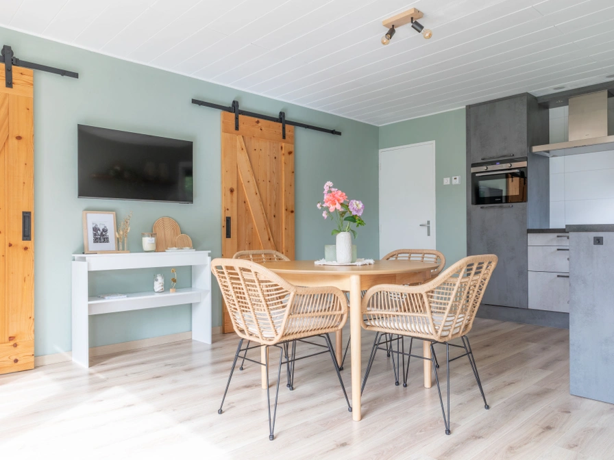 Woonkamer met zithoek en smart-TV. Open keuken met kleine vaatwasser, combi-magnetron en Nespresso. Twee slaapkamers elk met 2-persoons bed. Extra kleedkamer met kastenwand en ruimte voor het kinderbedje. Badkamer met douche en toilet. Ruime, beschutte en omheinde tuin voorzien van terras met loungebank, tuinmeubilair en barbecue.