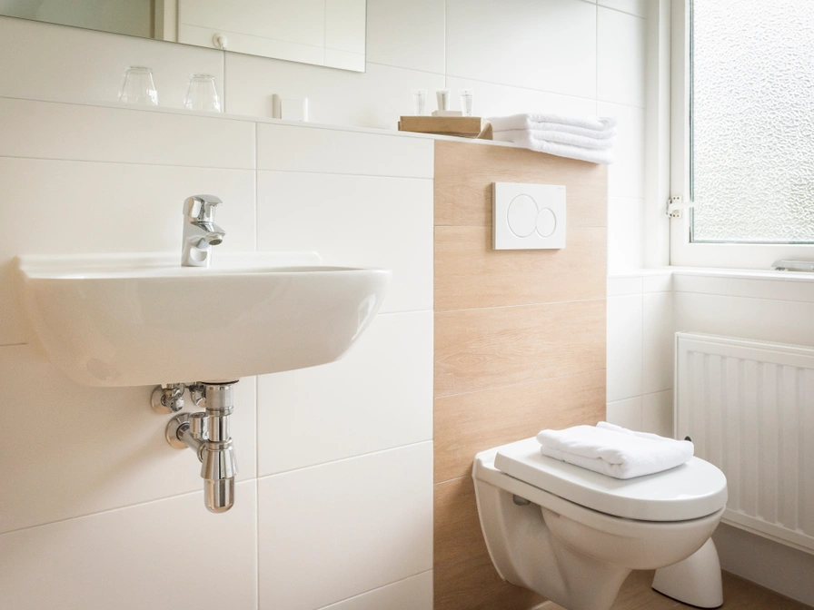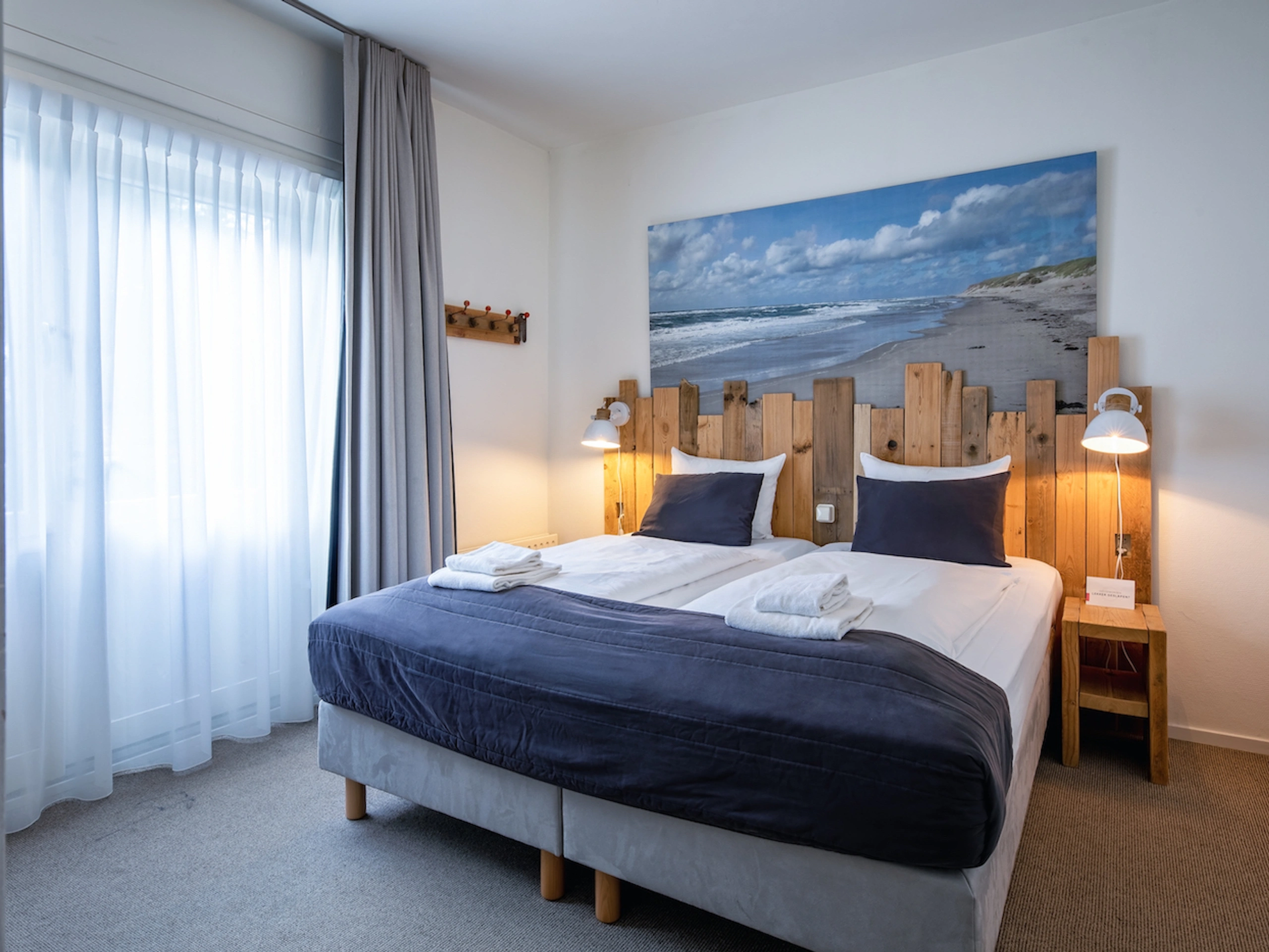 De kamer is voorzien van 2 boxspring bedden, kledingkast en een zitje met tafel. Er is gratis Wifi en een flatscreen tv. De moderne badkamer heeft een inloop douche, wastafel en toilet.