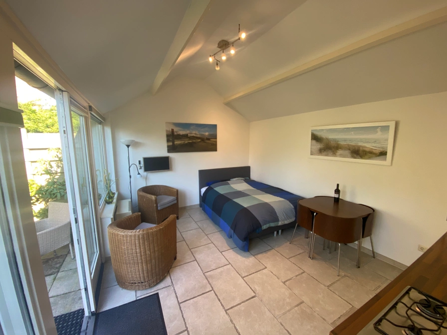 De woonkamer van deze geschakelde studio heeft een zit- en eethoek met tv. Er staan twee eenpersoonsbedden. De open keuken is ingericht met een koelkast, magnetron, waterkoker en koffiezetapparaat. Er is een badkamer met douche en een apart toilet. Studio De Wester heeft een besloten tuin met terras. Tuinmeubilair is aanwezig.