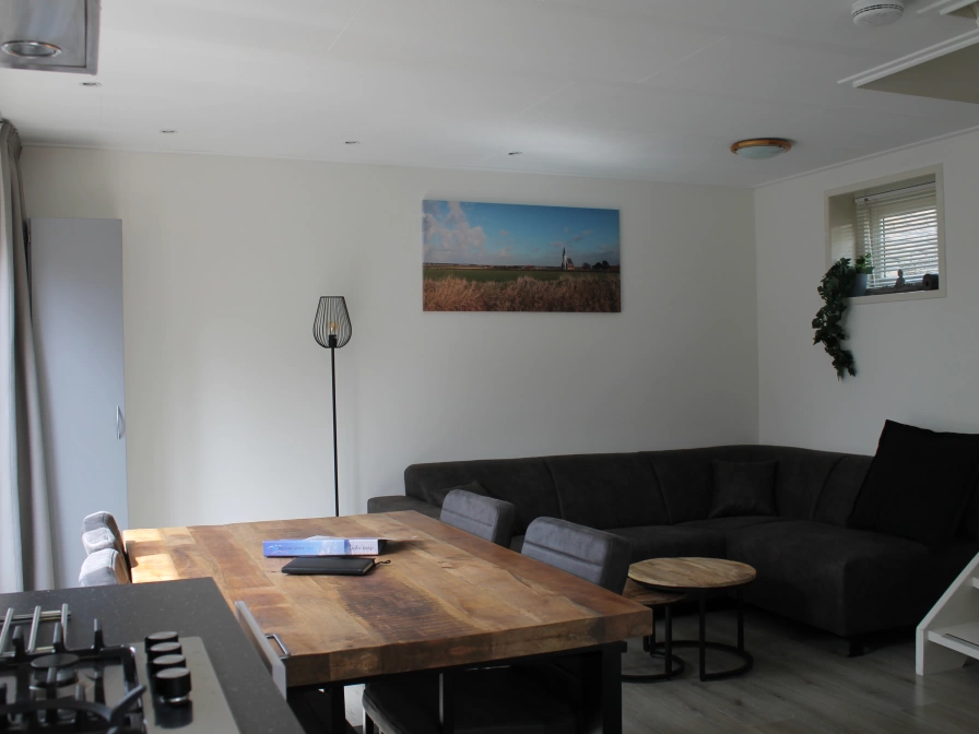 De ruime keuken is ingericht met vaatwasser, combimagnetron, koffiezetapparaat en waterkoker. De woonkamer heeft een zithoek met flatscreen-tv en radio/cd-speler. Er is ook een eethoek. De hal geeft toegang tot een toilet en een trap naar de bovenverdieping. Op de bovenverdieping zijn twee slaapkamers, waarvan één met tweepersoonsbed met eenpersoonsmatrassen en dekbedden (160 x 200). De andere slaapkamer heeft twee eenpersoonsbedden (80 x 200). De badkamer heeft een douche, wasgelegenheid met designradiator en toilet. Dit vakantiehuis heeft een tuin met terras.