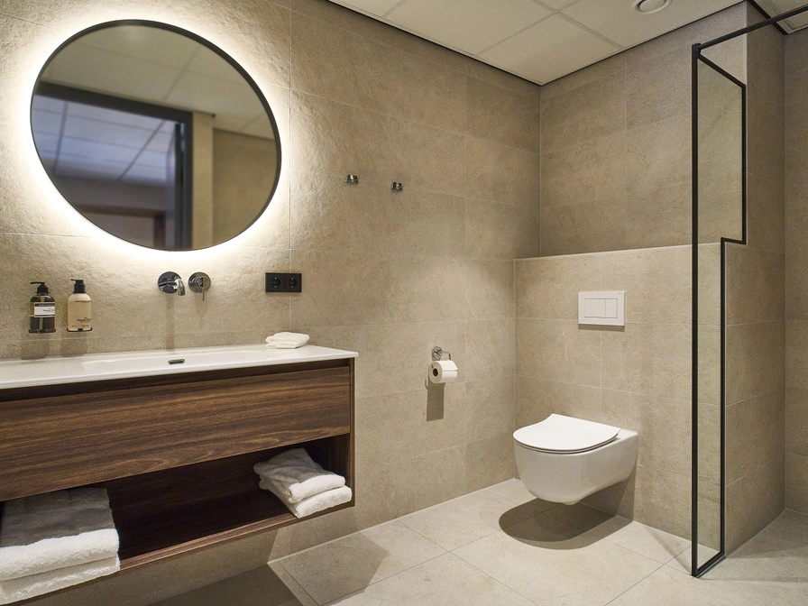 Deze ruime suite heeft een comfortabel tweepersoons boxpringbed, een fijne zithoek met smart tv en een kledingkast met grote spiegel. De riante badkamer beschikt over een ligbad, aparte inloopdouche met regendouche, wastafel en toilet. Informatie over het eiland ligt klaar in je kamer. Je beschikt over eigen koffie- en theefaciliteiten waaronder een waterkoker en een koffiecup machine. Je kamer is voorzien van wifi, verduisterende gordijnen en airconditioning. In de badkamer staan producten van het merk Marie-Stella Maris Body Care voor je klaar.