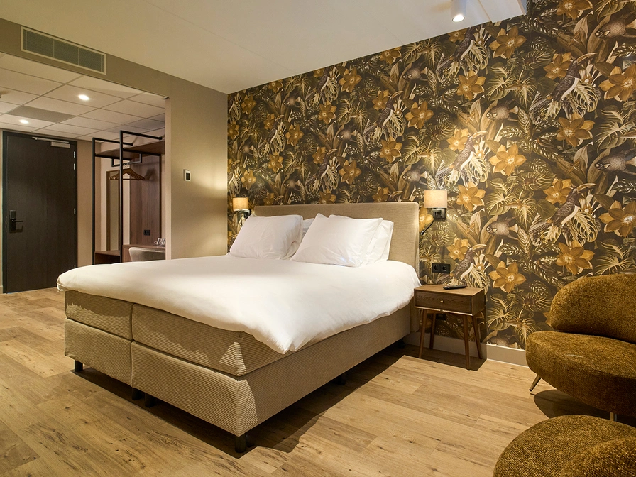 Deze superior kamer met douche heeft een comfortabel kingsize tweepersoons boxpringbed, een fijne zithoek met smart tv, een bureau en een kledingkast met grote spiegel. De riante badkamer beschikt over ligbad, inloop douche met regendouche, wastafel en toilet. Informatie over het eiland ligt klaar in je kamer. Je beschikt over eigen koffie- en theefaciliteiten waaronder een waterkoker en een koffiecup machine. Je kamer is voorzien van wifi, verduisterende gordijnen en airconditioning. In de badkamer staan producten van het merk Marie-Stella Maris Body Care voor je klaar.