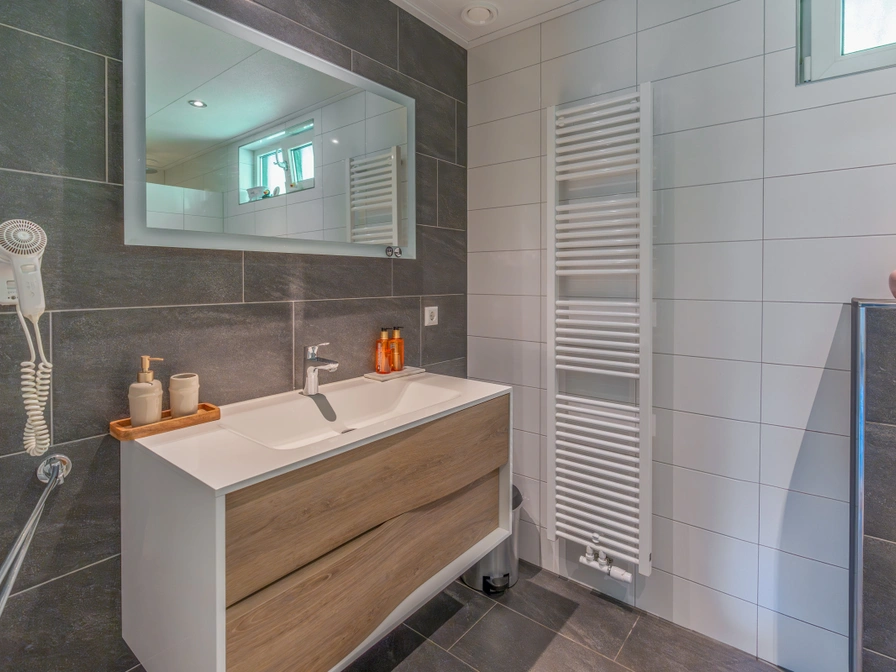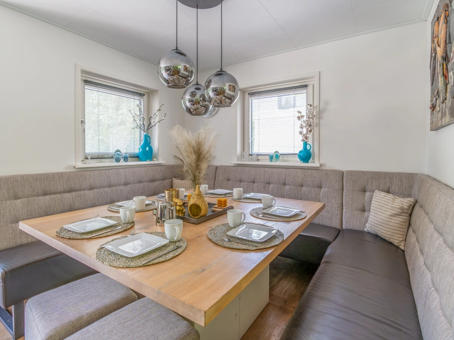 Deze geweldige familievilla ademt een sfeer van luxe en pure perfectie. Via de entree kom je in de riante living, waar je de woonkamer vindt welke voorzien is van een zithoek, Smart TV en een sfeerhaard. Wanneer je deze aanzet, geeft dit een gezellige en warme sfeer in de villa. De open keuken is van alle gemakken voorzien zoals een vaatwasser, koel-vriescombinatie, combimagnetron, filterkoffiezetapparaat en een Senseo koffiezetapparaat. De eethoek met royale eettafel biedt plaats voor 8 personen, op het comfortabele treinwagon bankstel kun je plaatsnemen voor de gezellige familiesfeer en om heerlijk te tafelen. Deze familievilla beschikt over vier riante slaapkamers. Eén slaapkamer bevindt zich op de begane grond en is voorzien van 2 comfortabele eenpersoons boxspring bedden tegen elkaar aan en een tv. Aansluitend is hier ook een badkamer aanwezig, die voorzien is van een inloopdouche, groot wastafelmeubel en een toilet. Op de etage kun je de overige drie slaapkamers vinden, die alle voorzien zijn van twee eenpersoons boxspring bedden. Op de etage is een luxe badkamer aanwezig, met een inloopdouche, ligbad met whirlpool functie, dubbel wastafelmeubel en een sauna waar je heerlijk in kunt ontspannen en helemaal tot rust kunt komen. Op de etage bevindt zich een separaat toilet. Vanuit de woonkamer heb je via de openslaande deuren toegang tot de heerlijke riante tuin die op het zuiden gelegen is. Er zijn verschillende plekken waar je heerlijk kunt relaxen en het buitenleven helemaal kunt ervaren. Voor de kleintjes is er een trampoline aanwezig om heerlijk buiten te kunnen genieten.