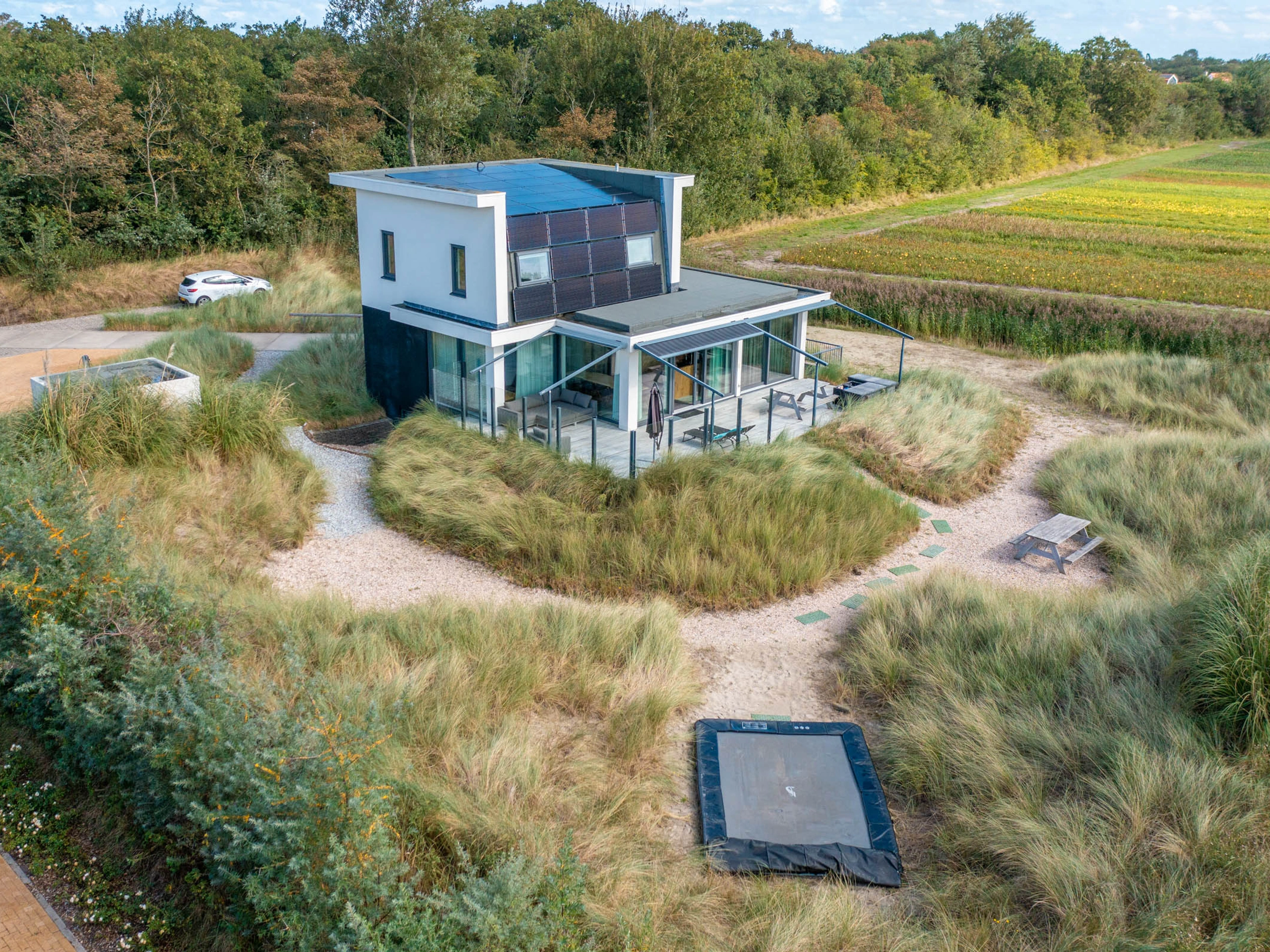 De slaapkamer op de begane grond is vanuit de woonkamer toegankelijk voor een rolstoel. Door de grote raampartijen op de begane grond komt er veel licht naar binnen. Het terras bij het huis is voorzien van zonnewering die je met de hand kunt bedienen. Voor de kinderen ligt er een springkussen in de tuin. Door een extra Texels tintje op de muur van alle slaapkamers is het iedere ochtend heerlijk wakker worden. Er zijn 3 privé parkplaatsen bij de accommodatie. Gratis Wifi.
