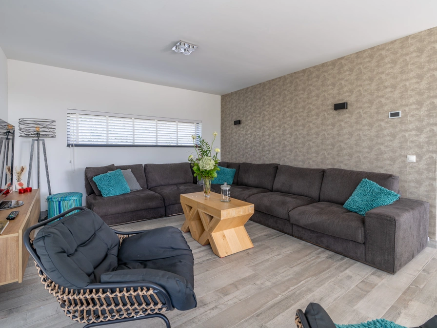 Entree, hal, living met een heerlijke zithoek met tv en een eethoek met eettafel voor 8 personen kunt vinden. Open keuken met o.a. een vaatwasser, combimagnetron, koelvriescombinatie en verschillende koffiemachines. Slaapkamer met een tweepersoons boxspring bed en een badkamer ensuite met inloopdouche met rainshower, ligbad met wihrlpool functie, een toilet en een dubbele wastafel. Inpandige trap naar het souterrain met drie slaapkamers en een badkamer. Twee slaapkamers zijn voorzien van een tweepersoons boxspring bed en de derde slaapkamer is voorzien van een twijfelaar. De nette badkamer heeft een inloopdouche met rainshower, ligbad en een wastafel. Op de eerste verdieping zijn nog eens twee slaapkamers en een badkamer. Een slaapkamer heeft een tv en zijn beide voorzien van een 2 eenpersoons boxspring bedden. De nette badkamer heeft een inloopdouche, ligbad en een wastafel. Op elke verdieping is een separate toilet aanwezig. Vanuit de woonkamer kom je via een schuifpui in de riante tuin die op het zuiden gelegen is en wordt omringd door duinpannetjes. Er zijn verschillende zitgelegenheden op het terras.