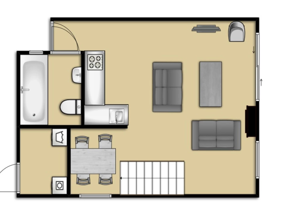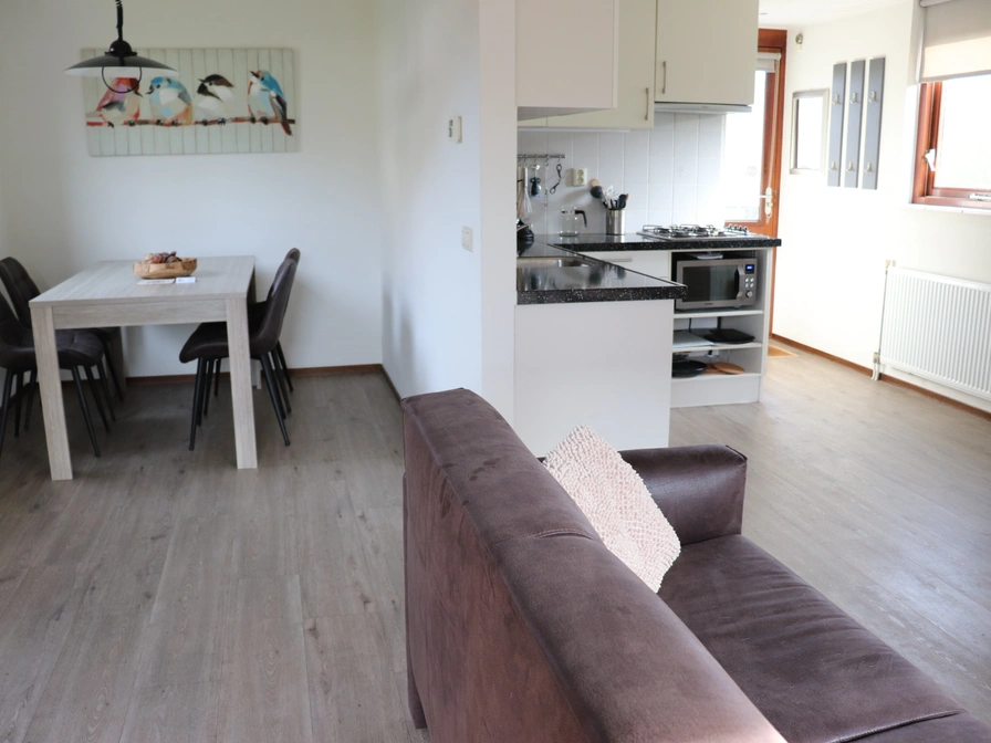 De open keuken van dit vrijstaande vakantiehuis is ingericht met oven, vaatwasser en magnetron. De woonkamer heeft een zithoek met open haard, tv en radio/cd-speler. Tevens is er een eethoek. Op de begane grond is een badkamer met douche en toilet. In de berging staan een wasmachine en droger. Op de bovenverdieping zijn twee slaapkamers met elk 2 eenpersoons bedden. Dit vakantiehuis heeft een tuin met terras. Tuinmeubilair is aanwezig.