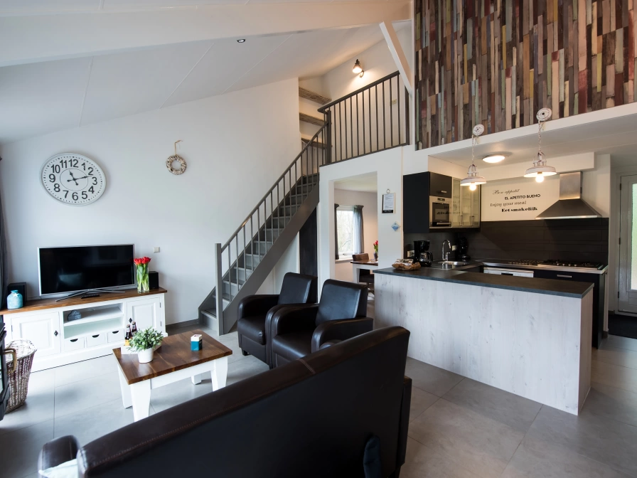 De open keuken van dit geschakelde vakantiehuis is ingericht met vaatwasser, magnetron, koffiezetapparaat en Senseo. De woonkamer heeft een zithoek met open haard, LED-tv, dvd-speler en radio/cd-speler. Tevens is er een eethoek. Op de begane grond bevindt zich een badkamer met inloopdouche en wastafel. Op de bovenverdieping zijn twee slaapkamers met elk 2 eenpersoons bedden, inclusief bedlinnen. Een van de slaapkamers heeft een tv. Dit vakantiehuis heeft een beschutte, afgesloten tuin met terras. Tuinmeubilair is aanwezig.