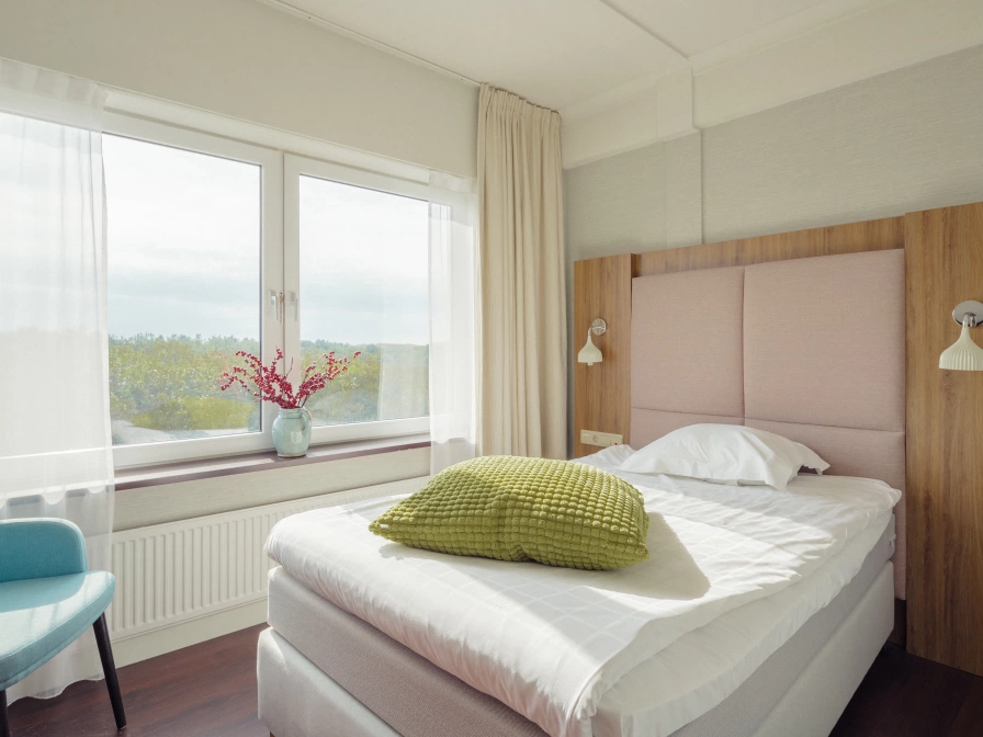 Een Texels ontbijtbuffet is inbegrepen. Ook 's avonds kunt je in een van de twee restaurants genieten van heerlijke gerechten met lokale ingrediënten. Relaxen kan in de Beauty & Wellness. Ook kun je de sauna bezoeken of een duik nemen in het verwarmde zwembad. De kamer is voorzien van airconditioning. Een kluisje is aanwezig. Er is geen kledingkast aanwezig.