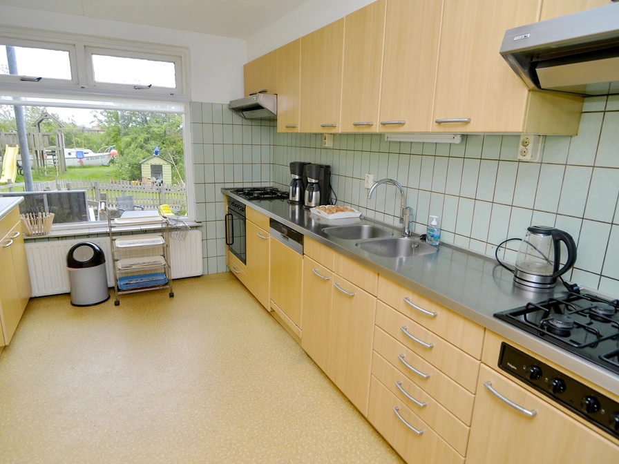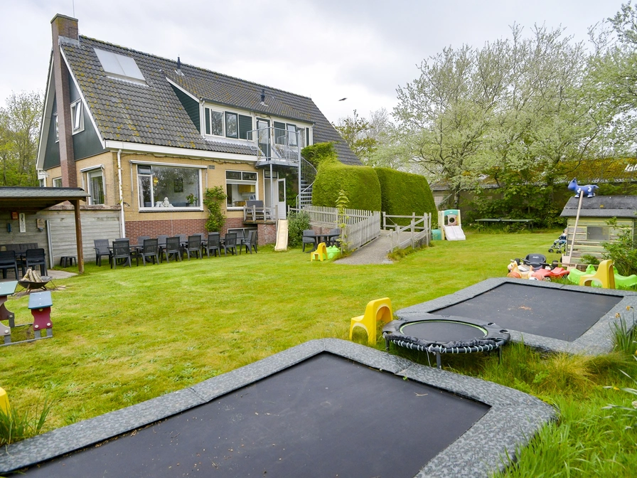 Op de begane grond is de ruime woonkamer met twee aparte zitjes, openhaard incl. hout, twee tv's en dvd spelers, elektrisch drumstel, PS2, Wii incl. veel leuke spelletjes. Een compleet uitgeruste keuken met vaatwasser, heteluchtoven/ grill, magnetron, elektrische gourmetplaten, elektrische poffertjespannen, twee vierpitsgasstellen, twee koelkasten met diepvries. Verder zijn er op begane grond nog een toilet, badkamer met ligbad met toilet en wastafel, en een invalidenbadkamer met aangepast toilet, wastafel en douchestoel. Wasmachine en wasdroger zijn aanwezig. Er zijn drie slaapkamers (twee keer tweepersoons, één keer driepersoons) met wastafelmeubel. Op de eerste etage zijn nog zes slaapkamers (twee keer tweepersoons, vier keer driepersoons) ook met wastafelmeubel. Het zijn allemaal eenpersoonsbedden (80 x 200cm). Verder één apart toilet, één badkamer met douchejets en toilet, één badkamer met bubbelbad en douche en één badkamer met toilet, douche en infraroodsauna. Verder is er nog een zolder met o.a. verkleedkleren, spelletjes, voetbalspellen, drie sjoelbakken, fitnessapparaten, zonnebank met infraroodknop, chi, massagebank, honderden cd`s, dvd`s en boeken. Achter huis is een grote beschutte, afgesloten tuin met tuinstoelen, buitenkeuken, twee grote trampolines, één kleine tafeltennis en een volleybal/ voetbalveld. Ook is er een eigen parkeerterrein voor zeven auto`s. Je kunt gratis gebruikmaken van de vele fietsen, tandems, twee elektrische fietsen, skelters, enzovoort.