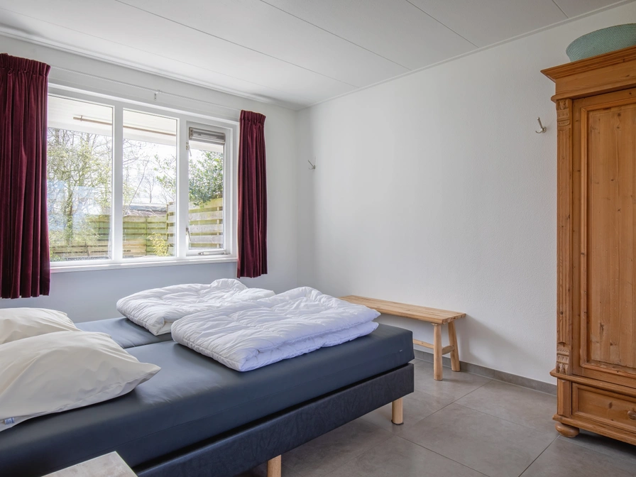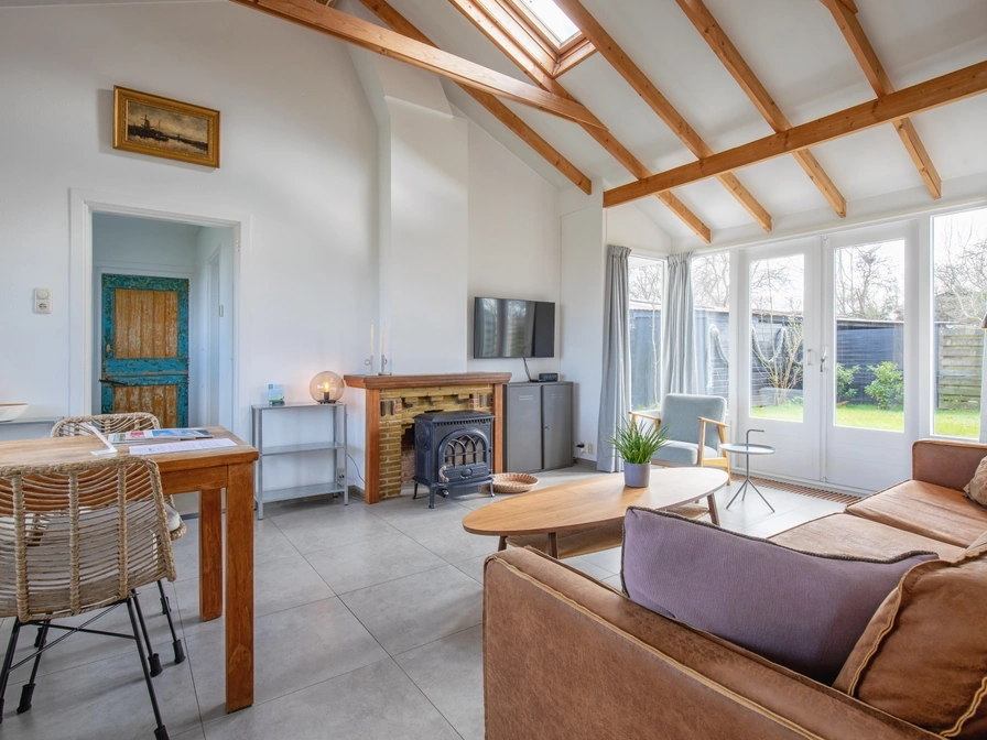 De woonkamer heeft een zithoek met houtkachel, tv en radio/cd-speler. Tevens is er een eethoek. De aparte keuken is ingericht met een magnetron, koelkast, oventje, koffiezetapparaat en waterkoker. In de bijkeuken staat een vaatwasser. Er zijn twee slaapkamers met ieder twee eenpersoonsbedden. De badkamer heeft een douche en wastafel. Er is een apart toilet. Dit vakantiehuis heeft een tuin met terras op het zuiden.