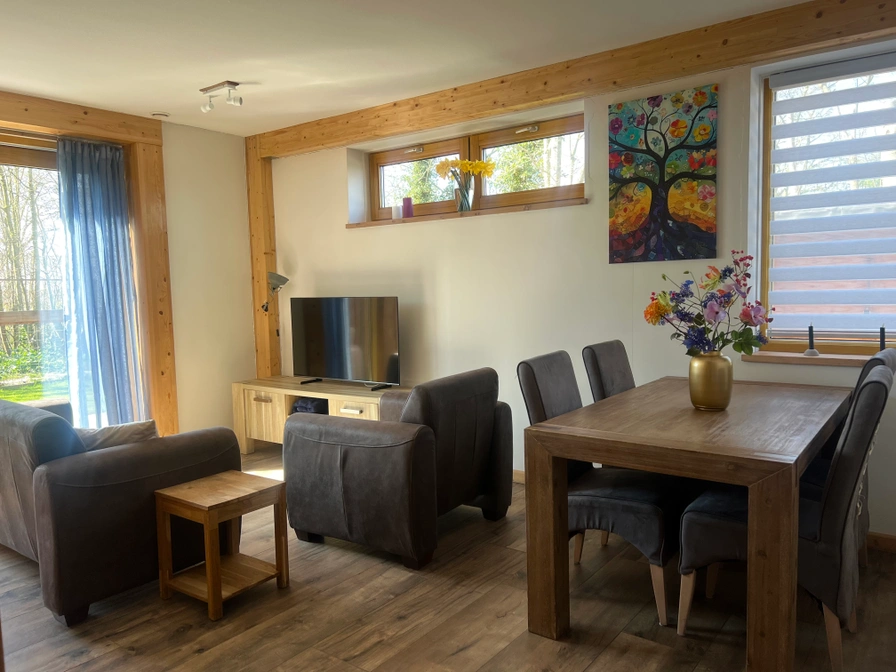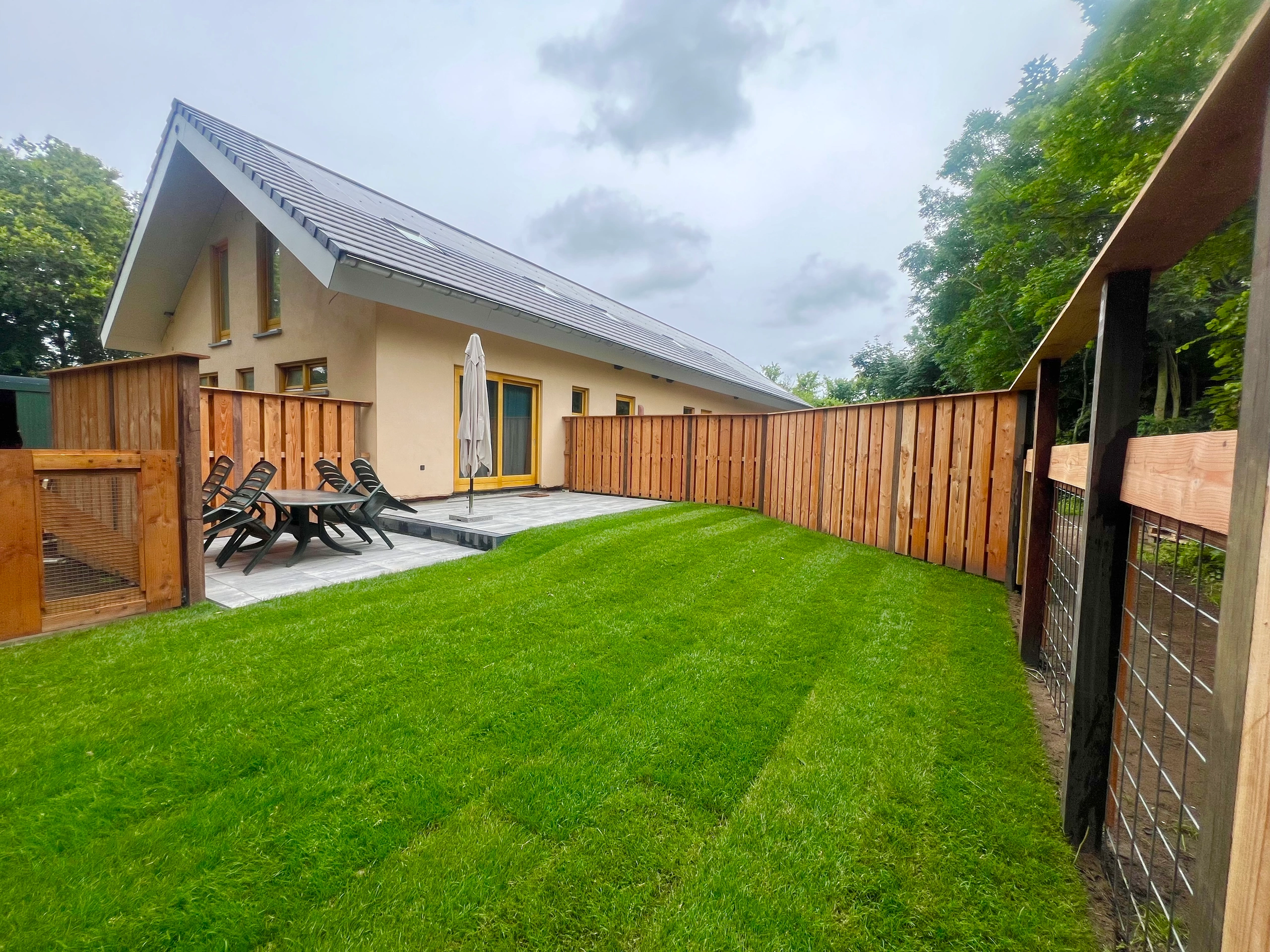 Dit appartement heeft een woonkamer met zithoek, tv en een eethoek. De mooie open keuken is luxueus ingericht met koelkast, combi-oven/magnetron, afwasmachine, Quooker, koelkast met vriesvak, broodrooster, Senseo en inductiekookplaat. Twee slaapkamers met elk twee eenpersoons-boxspring bedden. De grote badkamer heeft een regendouche en toilet. Het appartement heeft een eigen, afgesloten tuin. Je kijkt uit op de paardenstallen. Dit huis is volledig milieuvriendelijk gebouwd met kalkhennep. Dit zorgt voor goede isolatie en een gezond binnenklimaat. Alle ramen zijn voorzien van horren. Je kunt ons appartement boeken met één kleine tot middelgrote hond, maar als je twee kleine hondjes hebt dan maken wij natuurlijk graag een uitzondering. Ook je paard kan mee op vakantie. Informeer naar de mogelijkheden.