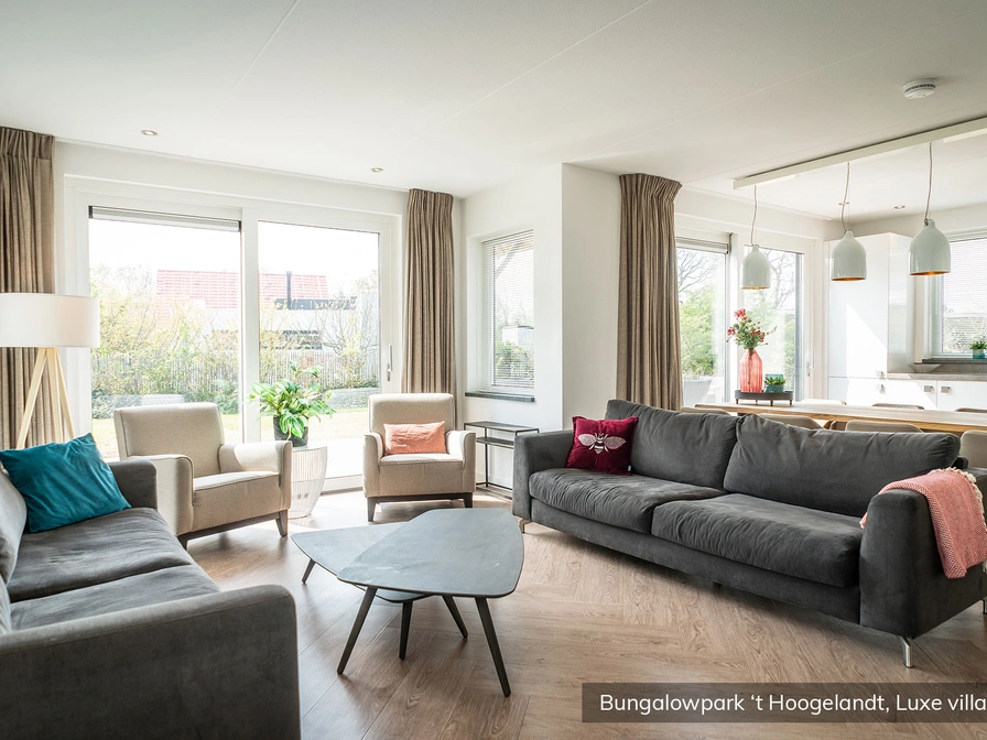 De woonkamer van deze luxe villa heeft een zithoek met design gashaard en flatscreen tv. De keuken is ingericht met koelkast, vaatwasser, magnetron en oven. Ook is er een ruime eethoek. Er zijn vier slaapkamers (waarvan 1 op de begane grond) en twee badkamers. Deze villa heeft een royale tuin met tuinmeubilair.