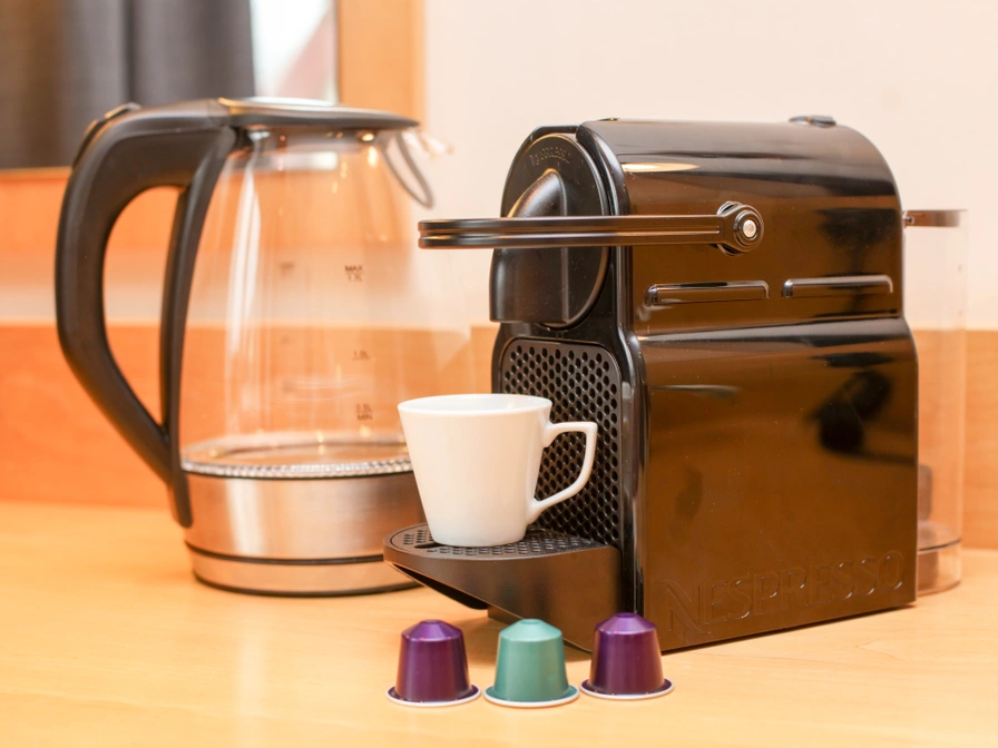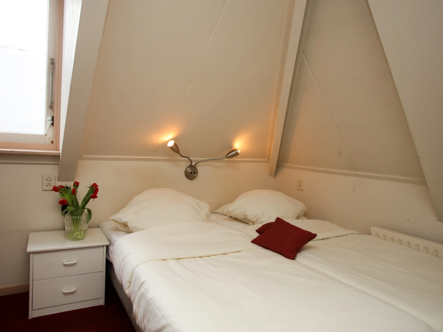 Deze tweepersoonskamer met 2 losse eenpersoonsbedden (extra lang), een flatscreen tv, een kledingkast, een bureau, kluisje en een zitje. Je beschikt over een eigen waterkoker en koffiezetapparaat. De kamer heeft een badkamer met douche, wastafel en toilet.