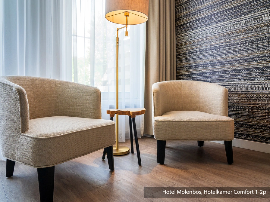 Deze kamer wordt met ontbijt aangeboden. Hotel Molenbos heeft het Green Key Goud certificaat. Bedrijven met dit certificaat doen meer op het gebied van duurzaamheid dan de wet vraagt. Zo is in hotel Molenbos goed gekeken naar isolatie, duurzame materialen en slimme techniek om energie te besparen. De afgelopen jaren zijn achter de schermen vele energiebesparende maatregelen op het gebied van o.a. water, verlichting, verwarming en schoonmaak doorgevoerd.