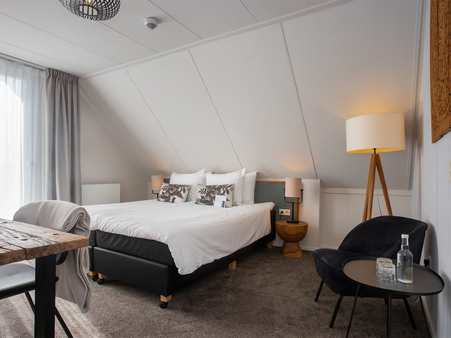 Deze kamer wordt met ontbijt aangeboden. In November 2025 wordt Restaurant Gusta, de bar, lounge en onze entree & lobby gerestaureerd. Een grote klus en daarom is het Hotel & Restaurant tijdelijk gesloten. Op een aantal momenten is het hotel toch geopend als "BOUTIQUE B&B TEXEL". Anders dan anders, maar dat is wel zo leuk! De volgende weekenden is het hotels als B&B style geopend voor 2 nachten obv logies & ontbijt incl spa entree & zwembad: 14-16 november, 21-23 november en 28-30 november. Let op: Lounge, bar, restaurant en lobby gesloten ivm renovatie. Parkeren : kan gratis op ons parkeerterrein. Voor de receptie volg aangegeven route