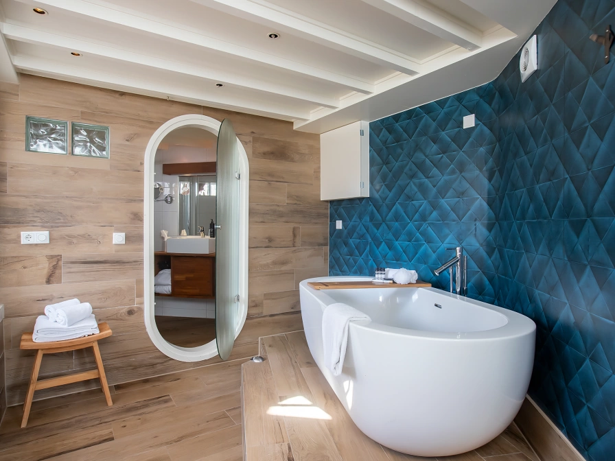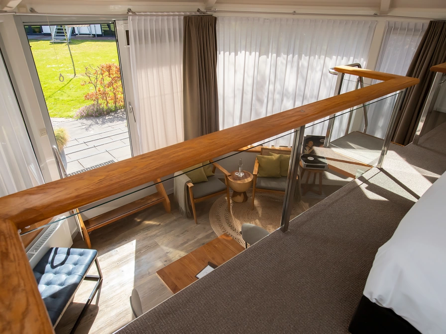Midden in de hotel tuin staat, op een rustig plekje, de Superior Tuin Suite. De suite is opgebouwd uit drie lagen, een badkamer met ruim ligbad en aparte regendouche met sunshower. Op de etage vind je een lounge voor een knus samenzijn met thee en Nespresso faciliteiten. Vanuit de lounge kom je met een trappetje op de 2e verdieping met een kingsize bed met Texeler dekbed. Vanuit je bed heb je via het dakraam zicht op de sterrenhemel. Privé terras.