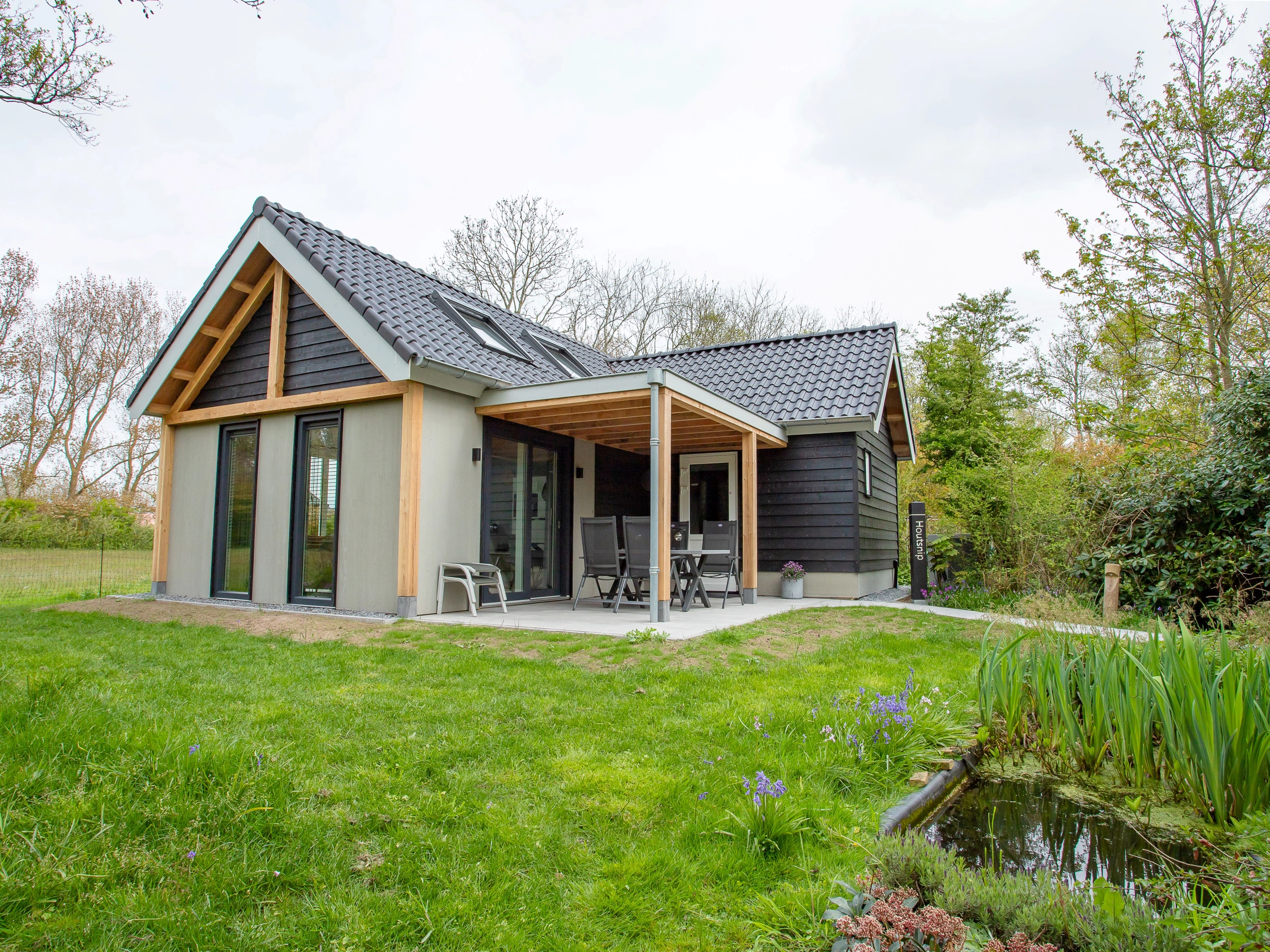 De Houtsnip is volledig CO2 neutraal vakantiehuisje voorzien van warmtepomp en zonnepanelen. Het tweepersoons huisje staat op een unieke locatie. De Houtsnip is voorzien van een ruime woonkamer. De keuken is voorzien van alle moderne gemakken en in de luxe badkamer kun je gebruik maken van een inloopdouche. De slaapkamer is voorzien van een Kingsize boxspringbed van topkwaliteit met Texeler-dekbedden. Het huisje heeft een overdekt terras en je kunt gebruik maken van de grote tuin met vijver.