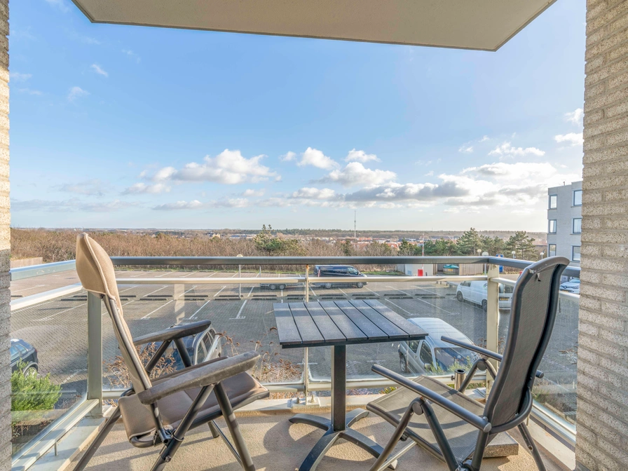 Dit appartement ligt op de eerste verdieping en biedt uitzicht over De Koog en het Texelse landschap. Entree, woonkamer met een zithoek met sfeerhaard, eethoek en een tv. De open keuken is ingericht met vaatwasser, combimagnetron, koelvriescombinatie en diverse koffiemachines. In de slaapkamer staan 2 eenpersoons bedden. De badkamer heeft een wastafel en een inloopdouche. Het toilet is apart. Dit appartement heeft een balkon op het oosten. Tuinmeubilair is aanwezig.