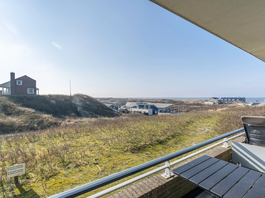 Entree, hal. Lichte woonkamer met een zithoek, tv en een eethoek met eettafel voor 4 personen. De open keuken is van alle gemakken voorzien zoals een vaatwasser, combimagnetron, koelkast met vriesvak en verschillende koffiezetapparaten. Er zijn 2 slaapkamers in het appartement, de grote slaapkamer is voorzien van een tweepersoons bed met 2 eenpersoons Auping matrassen en een tv. De kleine slaapkamer heeft 2 eenpersoons boxspring bedden en is gelegen in het midden van het appartement en beschikt daardoor niet over een raam met uitzicht naar buiten. De badkamer is voorzien van een inloopdouche met rainshower en een wastafel. In de hal bevindt zich een separaat toilet. Het terras is gelegen op het zuiden en heeft uitzicht op de duinen, badplaats De Koog en de Noordzee. Tuinmeubilair is aanwezig.