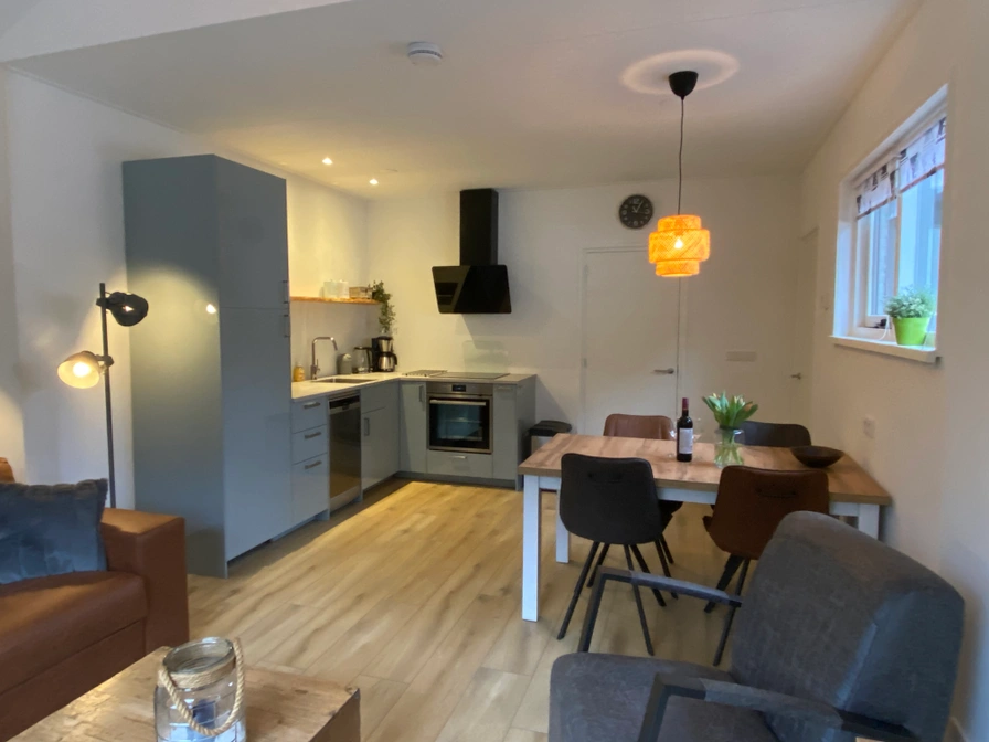 De woonkamer van vrijstaand vakantiehuis De Jutter heeft een zithoek met Smart-tv. Er is ook een eethoek. De open keuken is ingericht met inductie kookplaat, oven, koelkast met vriesvak en vaatwasser. Er is een slaapkamer met twee eenpersoons-boxspringbedden. De badkamer heeft een douche, wastafel en toilet. in de berging staat een was/droog machine. Dit vakantiehuis heeft een afgesloten tuin en gezellige overkapping Tuinmeubilair is aanwezig.