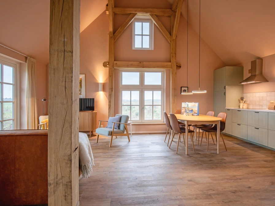 Dit vakantiehuis in authentieke boerderijstijl is zeer rustig gelegen bij de duinen aan het einde van een doodlopende weg nabij natuurgebieden De Petten, De Geul en de Mokbaai, ten zuiden van Den Hoorn. Op het terrein van 7 hectare van de voormalige boerderij Einde van de Wereld staan 2 geschakelde vakantiehuizen en het woonhuis van de eigenaar. Op loopafstand van De Hors, een heerlijk gebied voor eindeloze wandelingen. In het dorp Den Hoorn, op 2 kilometer afstand, zijn een supermarkt, restaurants en fietsverhuur.