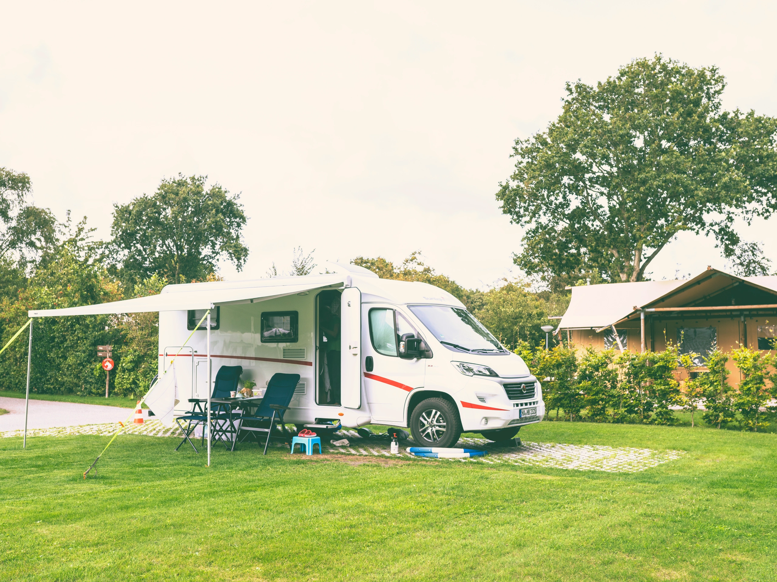 Luxe verharde camperplaatsen naast de receptie met riante groenstrook (gras) bestemd voor campers tot 8 meter. De plaatsen zijn voorzien van een tv-, water- en stroomaansluiting (16 ampère). Tevens is er een vuilwaterafvoer. Het verwarmd sanitair paviljoen heeft voldoende douches, wasgelegenheden en toiletten. In de centrale ruimte is plek om af te wassen. Kleinere camperbusjes/multivans (maximaal 2300 kg) kunnen een plaats uitzoeken op één van onze kampeervelden.