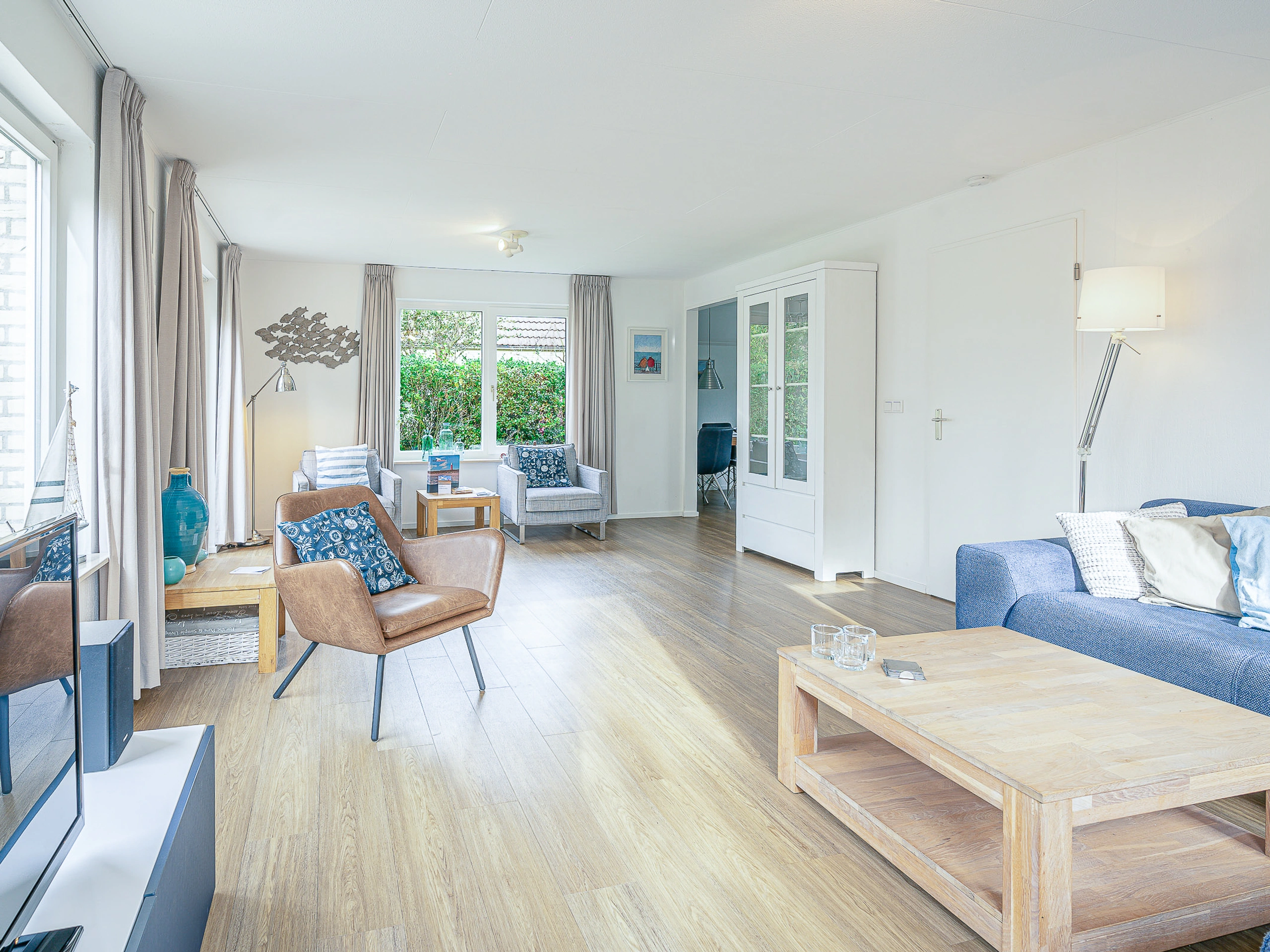 Entree, hal. Ruime en lichte woonkamer met zithoek en tv. Open keuken en eethoek met eettafel voor 6 personen. De keuken is van alle gemakken voorzien zoals een vaatwasser, koelvriescombinatie, oven en diverse koffiemachines. Er zijn 2 slaapkamers op de etage aanwezig, beide met 2 eenpersoons bedden en een TV. Op de etage is ook een ruime badkamer met een douche, whirlpool, wastafel en een toilet. Op de begane grond bevindt zich een separaat toilet. Wanneer je vanuit de woonkamer de terrasdeuren opent, komt u op het terras en in de ruime tuin die op het zuidwesten gelegen is. Het terras is voorzien van een picknicktafel, tuinmeubelen en een parasol.