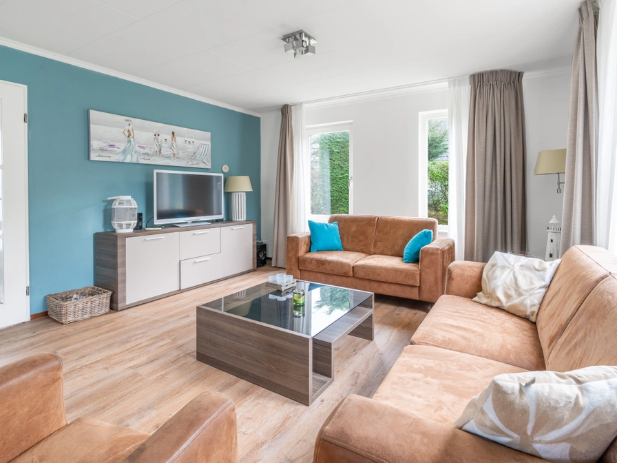 De woonkamer van dit vrijstaande vakantiehuis heeft een zithoek met tv, muziekinstallatie en een eethoek met eettafel voor 6 personen. De open keuken is voorzien van een vaatwasser, combimagnetron, koel-vriescombinatie, filterkoffiezetapparaat en een Senseo koffiezetapparaat. Op de begane grond is een slaapkamer met een tweepersoons boxspring bed, wastafel en een tv. In de berging staan een wasmachine en droger. Op de bovenverdieping zijn twee slaapkamers met elk 2 eenpersoons boxspring bedden en tv. De badkamer heeft een whirlpool, aparte douche, wastafel en toilet. Tevens is er op de begane grond nog een extra badkamer, welke voorzien is van een inloopdouche en wastafel. Op de begane grond bevindt zich een separaat toilet. Dit vakantiehuis heeft een ruime tuin en tuinmeubilair is aanwezig.