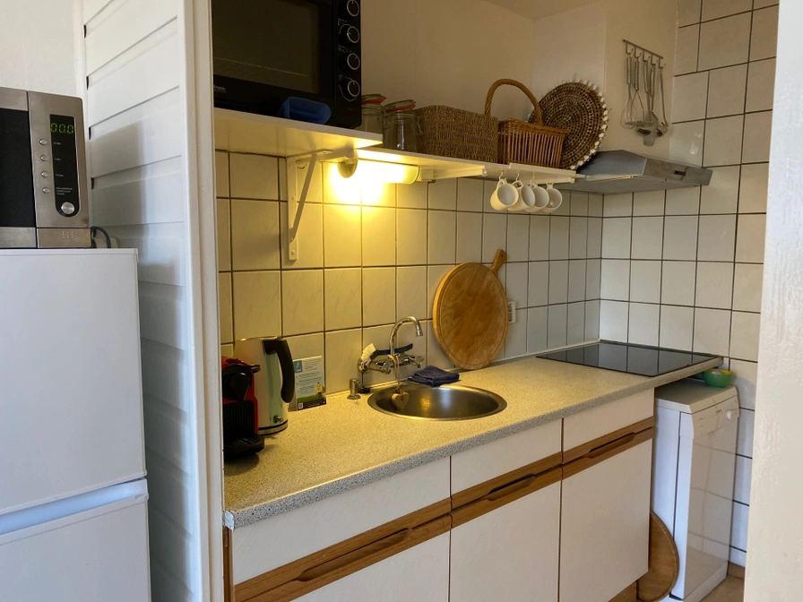 Dit knusse appartement ligt aan de straatzijde van Klif. De woonkamer is sfeervol ingericht en heeft een zithoek voor drie personen en een eettafel met drie comfortabele stoelen. De keuken is van alle gemakken voorzien met o.a. een koel/vrieskast, espressomachine, vaatwasser en magenetron. Op de begane grond bevindt zich tevens de eenvoudige badkamer met douche, toilet en wastafel. Via een ietwat steile trap kom je op de verdieping met twee slaapkamers. De slaapkamer aan de linkerzijde heeft een tweepersoonsbed (twee boxsprings) en garderobekast. De kamer rechts (kinderkamer) heeft een 1 eenpersoonsbed (1.80), een baby bed en wastafel. Aan de voorzijde van het appartement kun je gebruik maken van een gezellig zitje.
