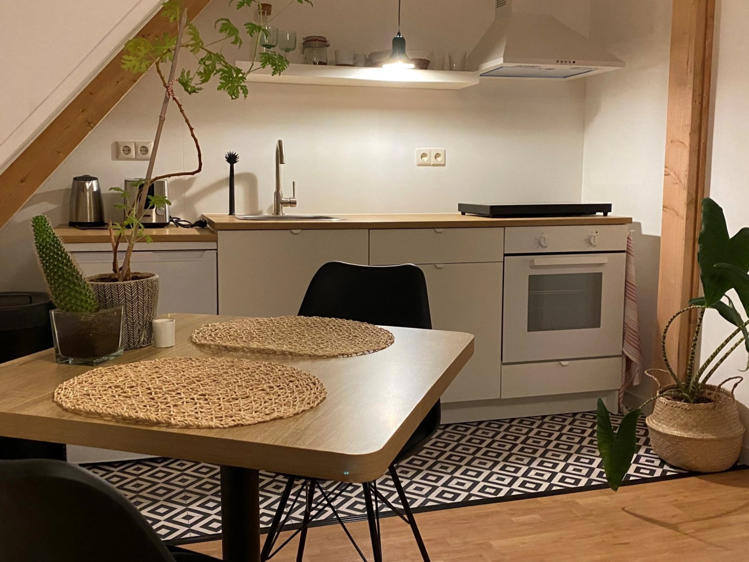 Studio 1 is gelegen op de eerste verdieping en beschikt over een lits jumeaux / 2 boxsprings. De studio heeft aansluitend een badkamer, voorzien van douche, toilet en dubbele wastafel. Ook is er een zeer complete kitchenette aanwezig met alle faciliteiten die nodig zijn om zelf te kunnen koken en eten.