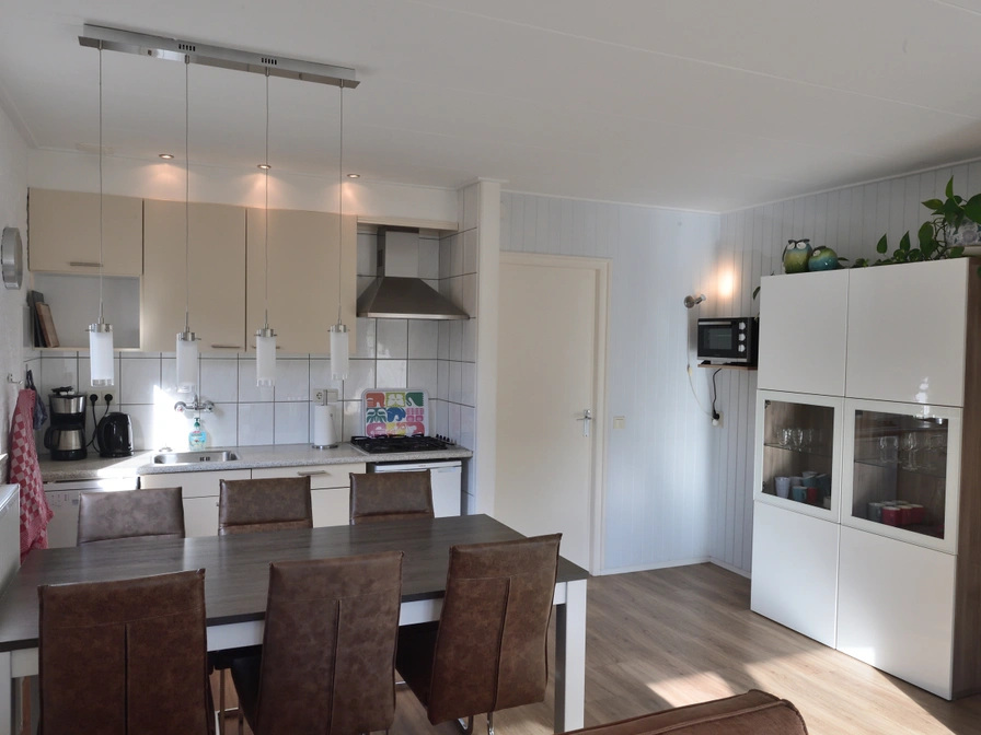 De woonkamer van deze vrijstaande bungalow heeft een eethoek en zithoek met open haard, tv en cd-speler. De open keuken is ingericht met koelkast, oven, vaatwasser en koffiezetapparaat. Er zijn drie slaapkamers, waarvan twee met 2 eenpersoons boxspringbedden. In de derde slaapkamer staat een stapelbed. De badkamer heeft een bad, aparte douche, wastafel en toilet. Deze bungalow heeft een afgesloten tuin met een terras op het zuiden. Tuinmeubilair is aanwezig.