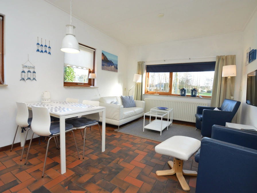 De woonkamer heeft een eethoek en zithoek met flatscreen-tv. De open keuken is ingericht met een gaskookplaat, kleine vriezer, combimagnetron, vaatwasser, waterkoker, koffiezetapparaat en Senseo. Er zijn twee slaapkamers, waarvan één met twee eenpersoons-boxspringbedden. In de andere slaapkamer staat een stapelbed met een verbreed onderbed (100 cm). De badkamer heeft een douche, wastafel, designradiator en toilet. Deze bungalow heeft een afsluitbare tuin met twee terrassen. Tuinmeubilair is aanwezig.