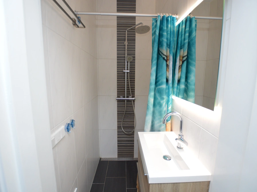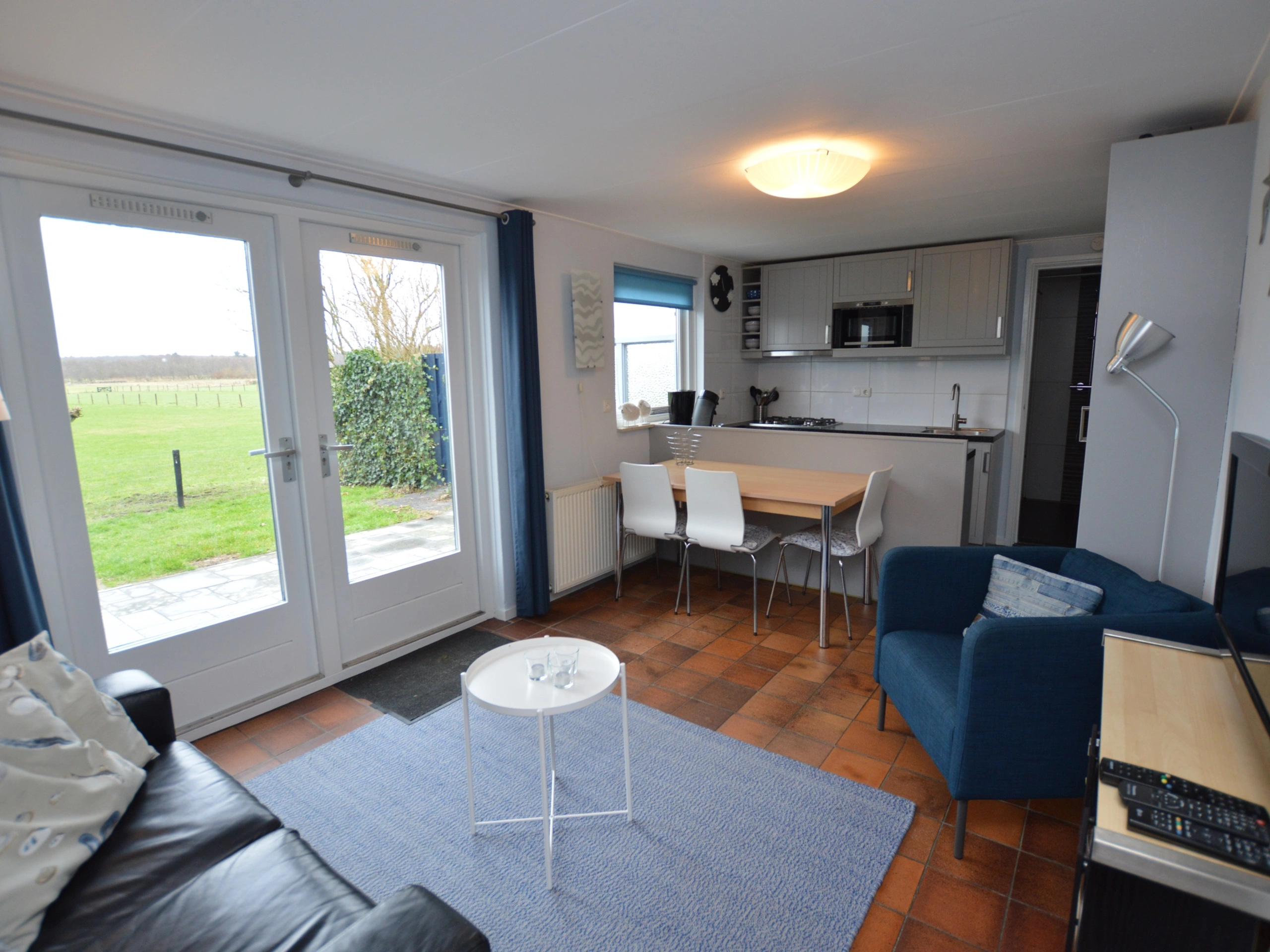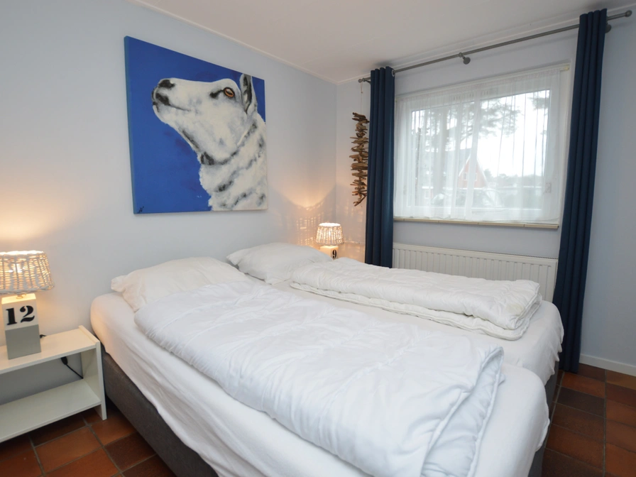 De woonkamer heeft een eethoek en zithoek met tv. De open keuken is ingericht met een koelkast, inductiekookplaat, combimagnetron, vaatwasser, koffiezetapparaat, Senseo en Nespresso. Er is een slaapkamer met tee eenpersoons-boxspringbedden. De badkamer heeft een douche en wastafel. Het toilet is apart. Deze bungalow heeft een kleine afgesloten tuin met terras. Tuinmeubilair is aanwezig.