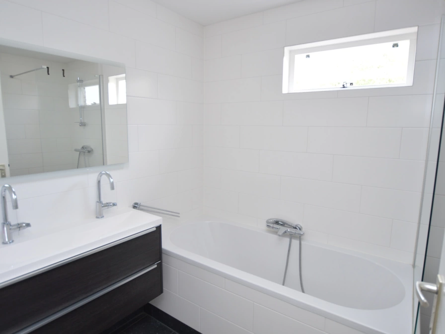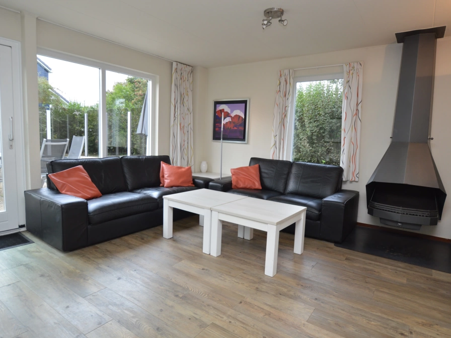 De woonkamer van dit vrijstaande vakantiehuis heeft een eethoek en een zithoek met open haard, tv, dvd-speler en radio/cd-speler. De open keuken is ingericht met een koelkast met vriesvak, 4-pits gaskookplaat, combimagnetron, vaatwasser, waterkoker, koffiezetapparaat en Nespresso. In de bijkeuken staan een wasmachine en droger. Er is een slaapkamer met 2 eenpersoons boxspringbedden. De badkamer heeft een bad met handdouche, aparte douche en dubbele wastafel. Het toilet is separaat. Op de bovenverdieping zijn twee slaapkamers, waarvan een met 2 eenpersoons boxspringbedden. De andere slaapkamer heeft 2 eenpersoons boxspringbedden en een sauna. Het toilet is apart. Dit vakantiehuis heeft een tuin met een beschut terras. Tuinmeubilair is aanwezig.