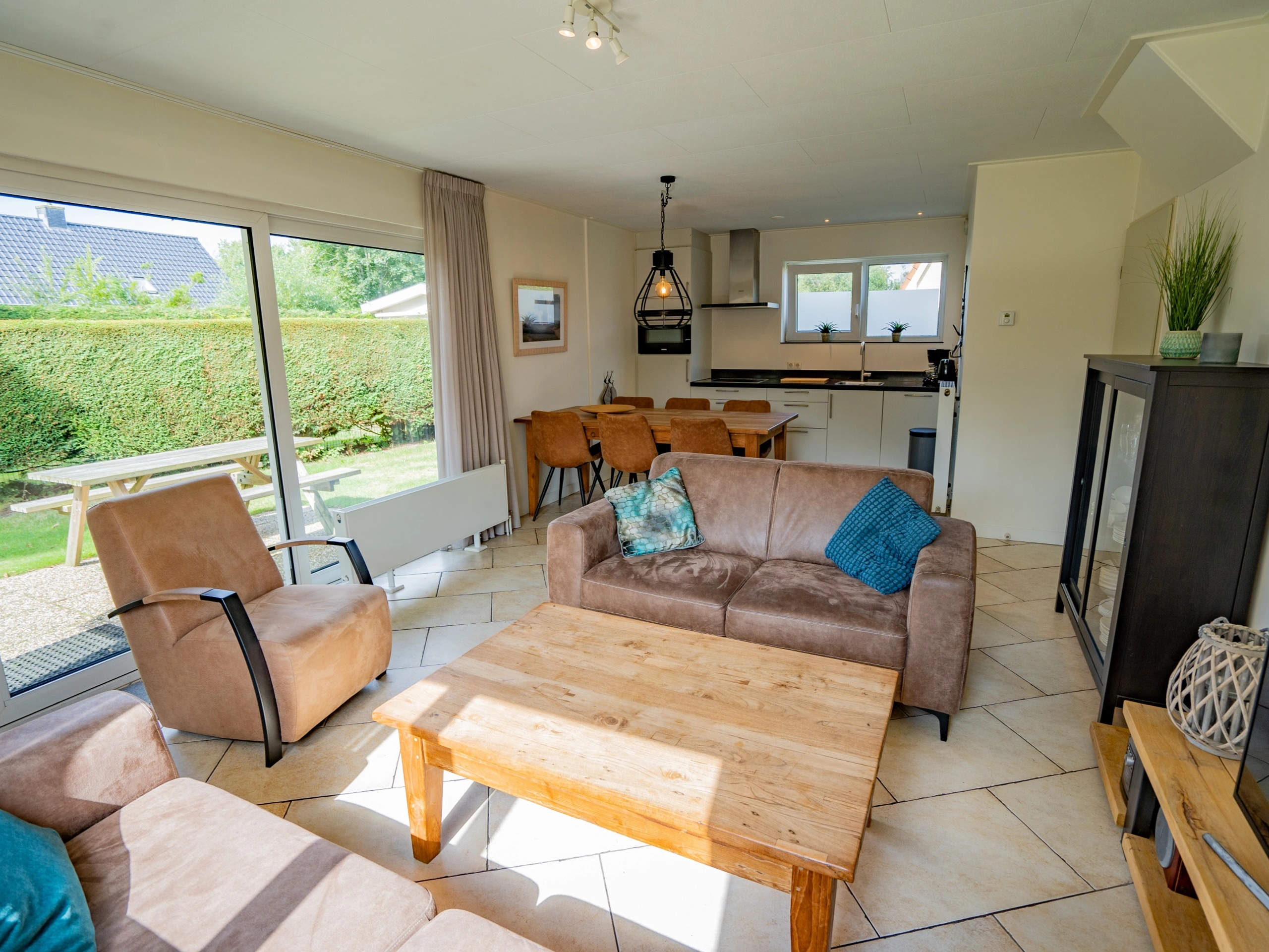 De woonkamer van dit comfortabele, vrijstaande vakantiehuis heeft een eethoek en zithoek met open haard, tv, en stereo. De keuken is ingericht met koelkast, 4-pits keramische kookplaat, koffiezetapparaat, combimagnetron en vaatwasser. Er is een slaapkamer met 2 eenpersoons bedden. De badkamer heeft een inloopdouche en wastafel. Het toilet is apart. Op de bovenverdieping zijn twee slaapkamers met elk 2 eenpersoons bedden. Alle slaapkamers hebben een wastafel. Tevens is hier een 2e badkamer met douche en toilet aanwezig. Dit vakantiehuis heeft een ruime tuin met terras. Tuinmeubilair is aanwezig.