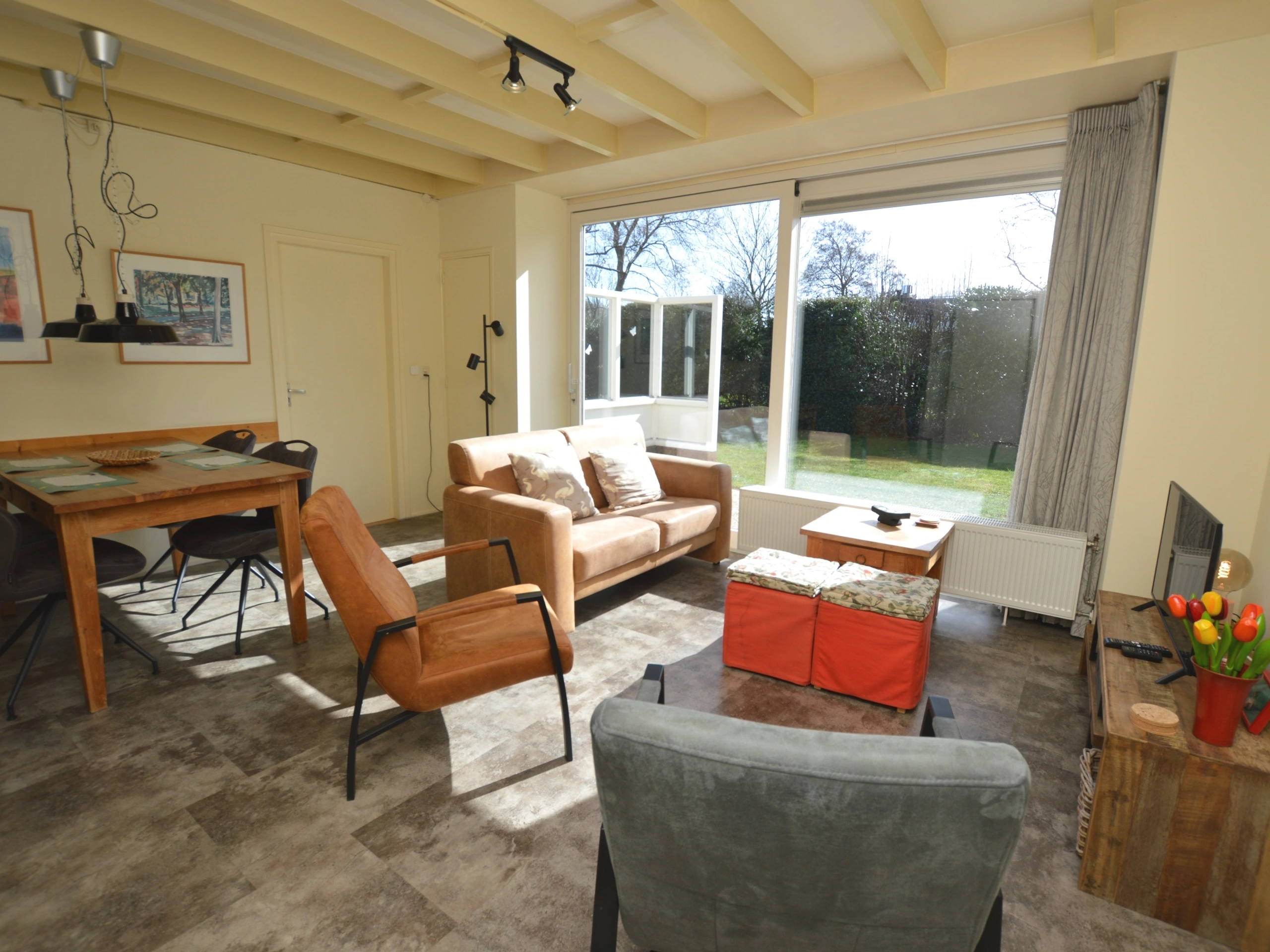 De woonkamer heeft een eethoek en zithoek met tv, dvd-speler en radio/cd-speler. De open keuken is ingericht met een koelkast, combimagnetron en vaatwasser. Er zijn drie slaapkamers, waarvan een met twee eenpersoonsbedden. Er is een slaapkamer met tweepersoonsbed, voorzien van twee matrassen. In de derde slaapkamer staat een eenpersoonsbed. De badkamer heeft een douche en toilet. De woning heeft een (afgesloten) tuin met buitensauna en douche, terras en eigen parkeergelegenheid. Bovendien heeft u de beschikking over een elektrische laadpaal.