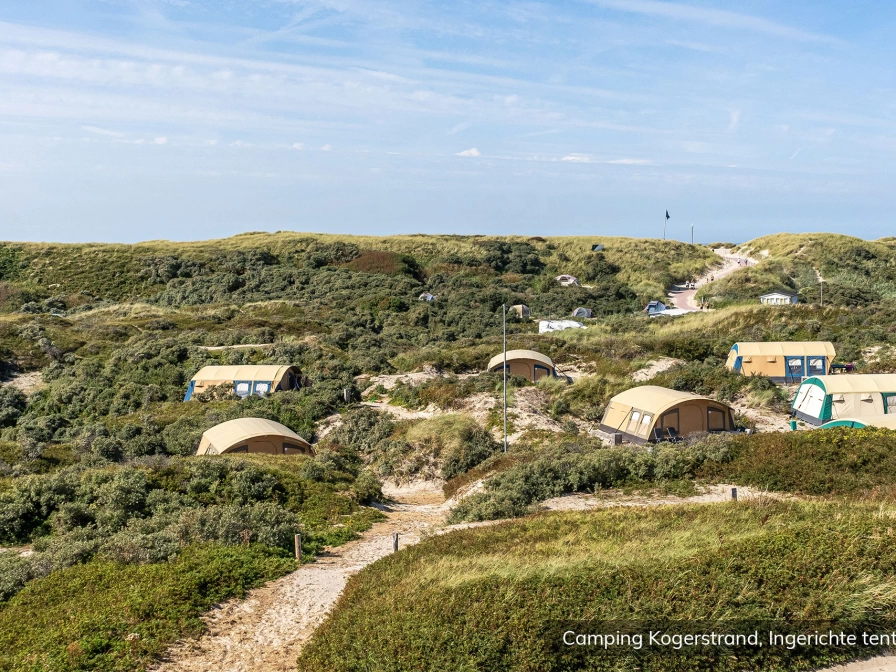 Camping Kogerstrand ligt aan de rand van De Koog in het Nationaal Park 'Duinen van Texel', op enkele minuten lopen van het uitgestrekte zandstrand en de Noordzee. Hier heb je alle ruimte om een strandwandeling te maken, lekker te zonnen, zandkastelen te bouwen of te vliegeren. Je ingerichte tent, camper- of kampeerplaats is gelegen tussen de duinpannen waar konijntjes en fazanten langs lopen. Door de gunstige ligging van de camping wandel je zo naar het dorpscentrum van badplaats De Koog om een terrasje te pakken of te shoppen in een van de vele winkeltjes. 's Avonds kun je lekker uit eten in een van de vele restaurants.