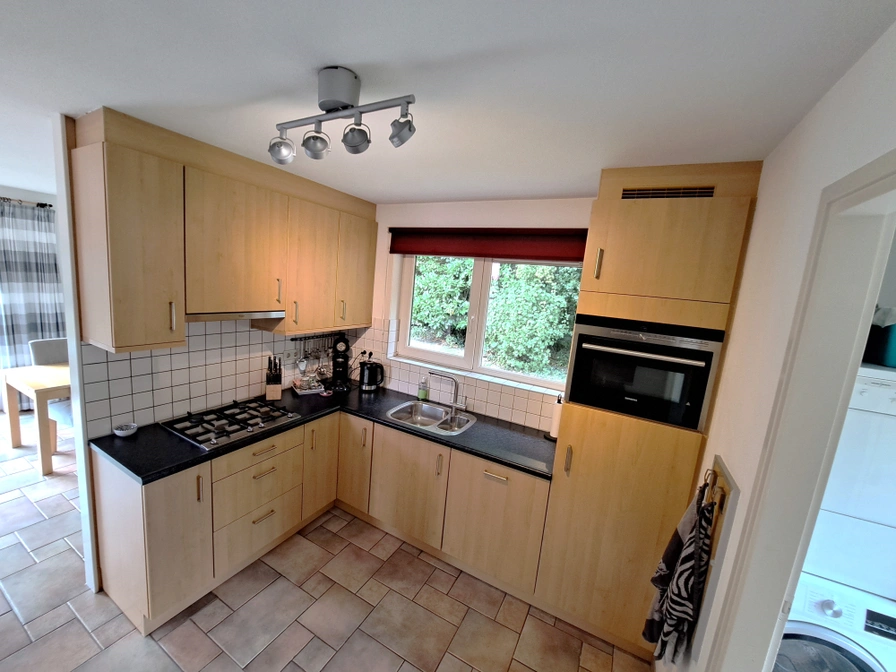 De woonkamer heeft een zithoek met sfeerhaard, lcd-tv, blu-ray/dvd-speler en radio/cd-speler. De open keuken is ingericht met koelkast, vaatwasser en combimagnetron. De badkamer heeft een ligbad. Er is een apart toilet. In de bijkeuken staan een wasmachine en droger. Op de bovenverdieping zijn twee slaapkamers met elk twee eenpersoons boxspringbedden (90 x 200) en een wastafel. Een van de slaapkamers heeft een tv met dvd-speler. Dit vakantiehuis heeft een tuin met terras op het zuidwesten. Terrasmeubilair en zitkussens voor buiten aanwezig.