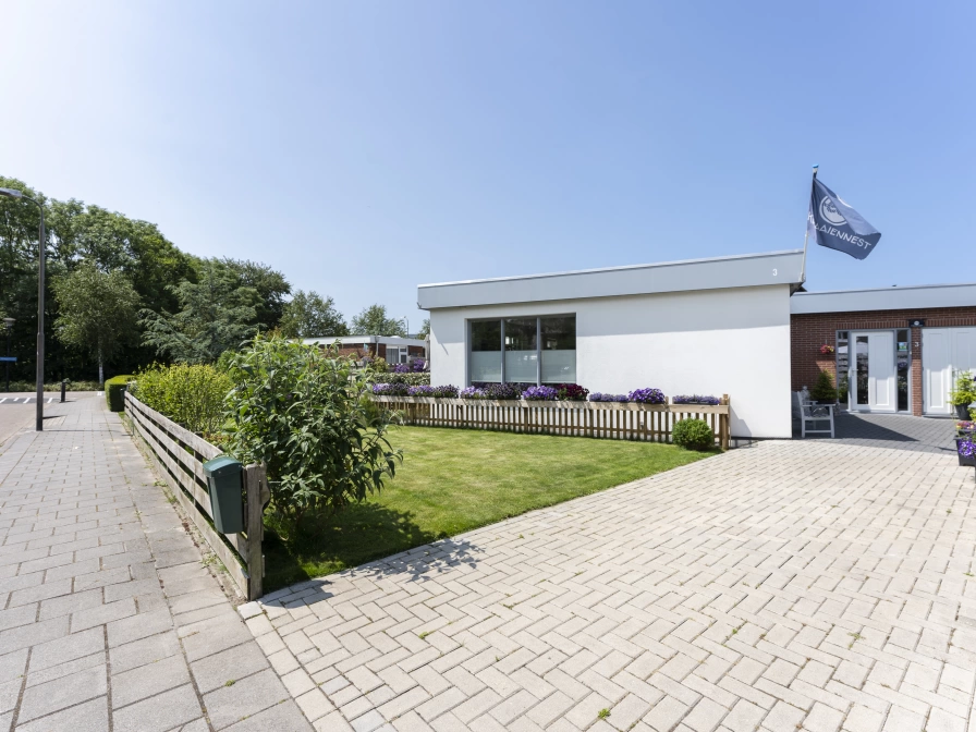 De ruime en comfortabele kamer bevindt zich op de begane grond en heeft een tweepersoons boxspringbed van 180 cm. breed en een eethoek met smart-tv. De keukenhoek is ingericht met een koelkast met vriezer, een waterkoker en Nespresso. De luxe badkamer heeft een douche, een wastafel en een toilet. Achter de openslaande deur, met hordeur, bevindt zich een terras met zitje en parasol. Het terras is afgesloten.