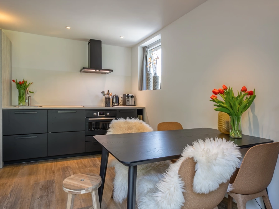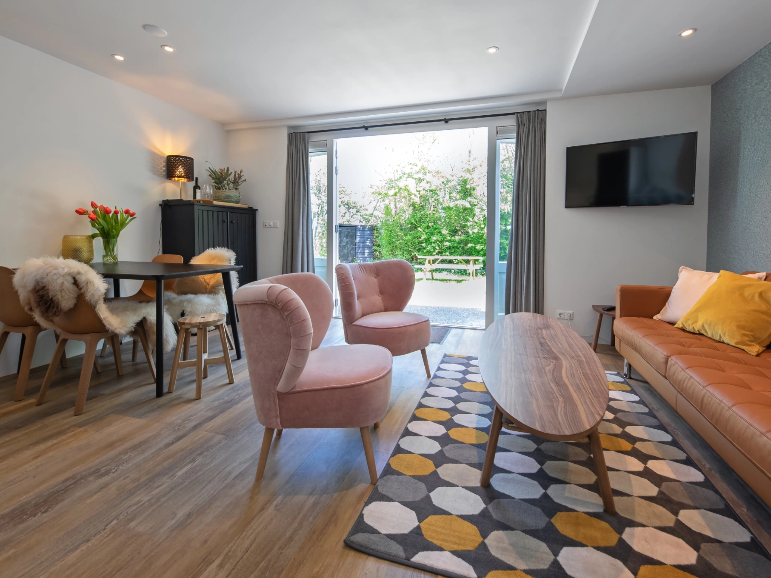 Dit moderne en gezellige appartement De Reede ligt op het erf van Landhuys Noorderhaecks. De woonkamer heeft een zithoek, eethoek, Smart-TV en Marshall audiosysteem. De open keuken is ingericht met inductiekookplaat, Nespresso, combimagnetron/heteluchtoven, vaatwasser en koelkast met vriesvak. De Reede heeft 2 slaapkamers met elk een tweepersoons kingsize boxspringbed en een eigen Smart-TV. De badkamer heeft douche, badmeubel en toilet. Vanuit de woonkamer kom je via openslaande deuren op een ruim eigen terras, met aansluitend een tuin die voor een groot deel wordt afgeschermd door hoge bomen en struiken.