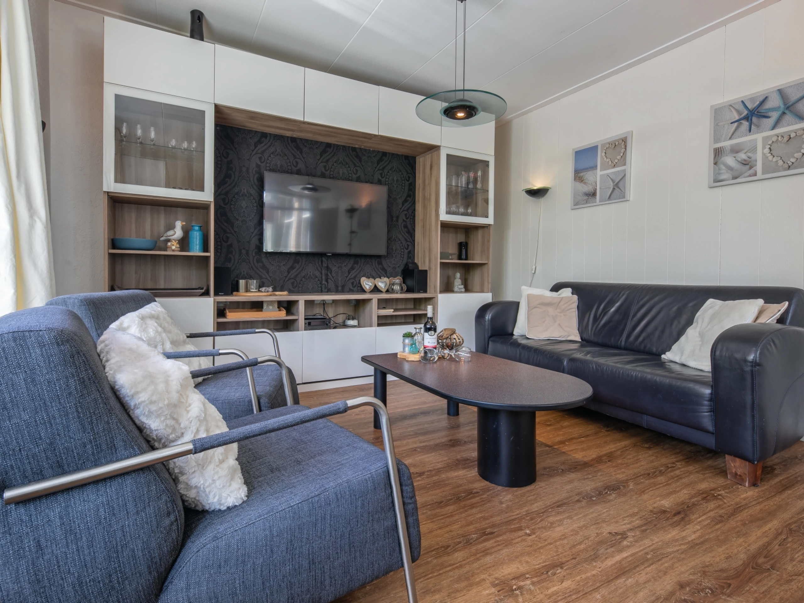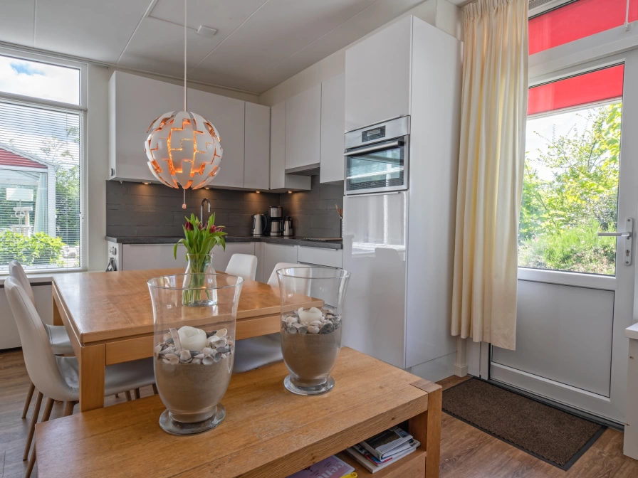 De woonkamer heeft een zithoek met lcd-tv, dvd-speler en radio/cd-speler. De open keuken is ingericht met keramische kookplaat, afzuiger, koelkast met vriesgedeelte, filterkoffiezetter, een vaatwasmachine en een combimagnetron met oven en grill. Er is tevens een eethoek. Er zijn twee slaapkamers, waarvan één met tweepersoonsbed (180x200) en tv. De andere slaapkamer heeft twee eenpersoonsbedden (70 x 200). Er is een badkamer met douche, wastafel en toilet. Deze bungalow heeft een eigen terras met tuinmeubilair. Je mag gebruikmaken van de royale tuin.